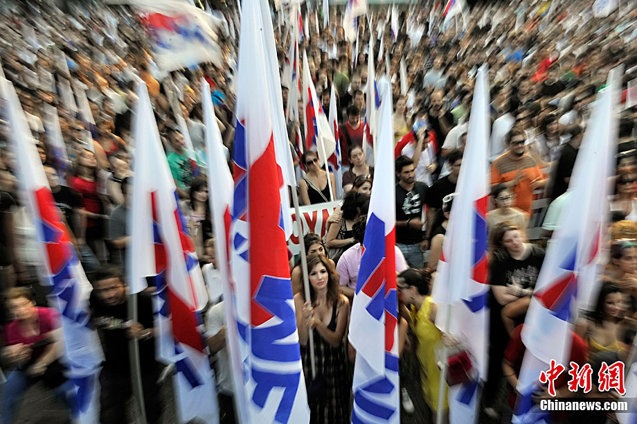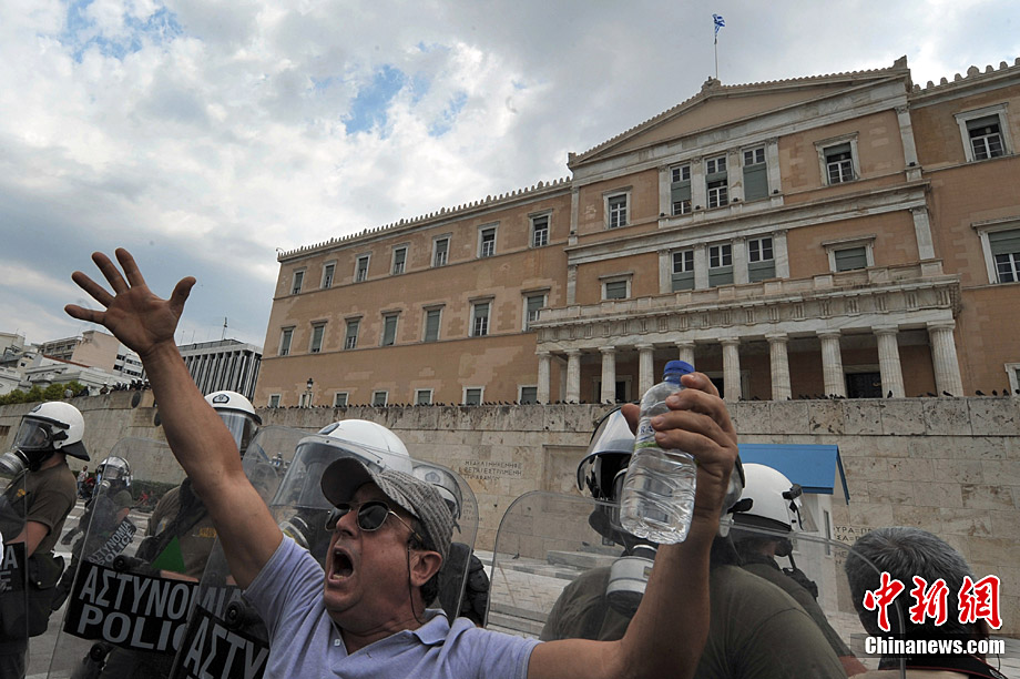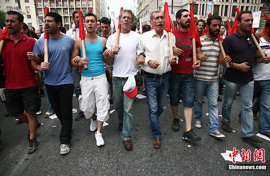 当地时间7月8日,希腊爆发了新一轮大罢工,抗议政府提前退休年龄,克扣养老金等严厉削减公共开支的措施。警方估计,仅在首都雅典,就有1.2万人走上街头游行示威。据悉,这场为期24小时的罢工当天导致希腊全国交通几乎瘫痪,火车停运、航班被迫延误、旅游渡轮停止航行,前往希腊旅游的游客要到9日才能搭乘渡轮。政府公共机构、学校、医院、国营企业的正常运营遭到沉重打击。
