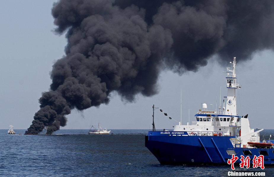 7月14日,美国,墨西哥湾漏油的清理工作继续进行,燃烧泄漏原油的力度继续加大。