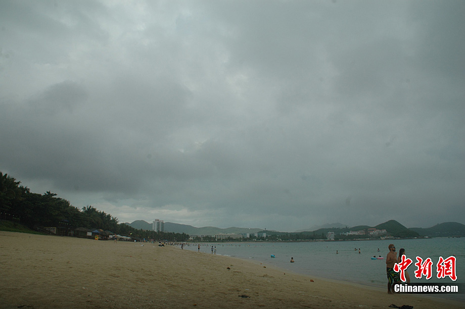 7月15日,海南三亚上空乌云密布。海南省气象台当日下午17时发布的天气预报称:今年第2号强热带风暴"康森",下午2点钟抵达距离海南省万宁市东南方大约440公里的海面,中心附近最大风力10级,风速达到28米/秒,7级大风范围半径150公里,10级大风范围半径30公里,预计"康森"将以每小时20公里左右的速度向西北偏西方向移动,于16日下午到夜间在海南省三亚到文昌一带沿海地区登陆。中新社发 尹海明 摄