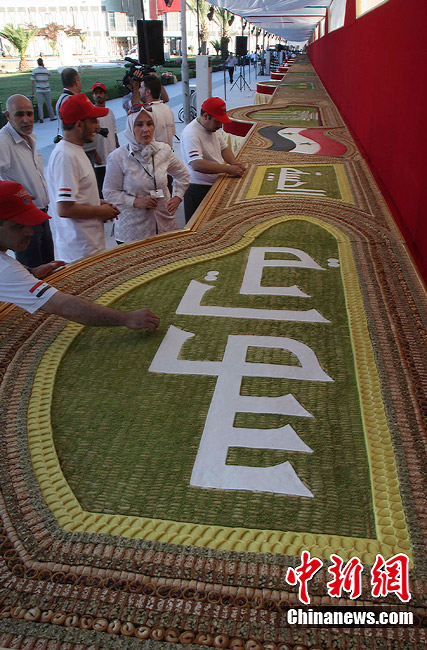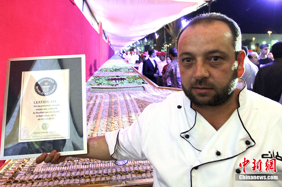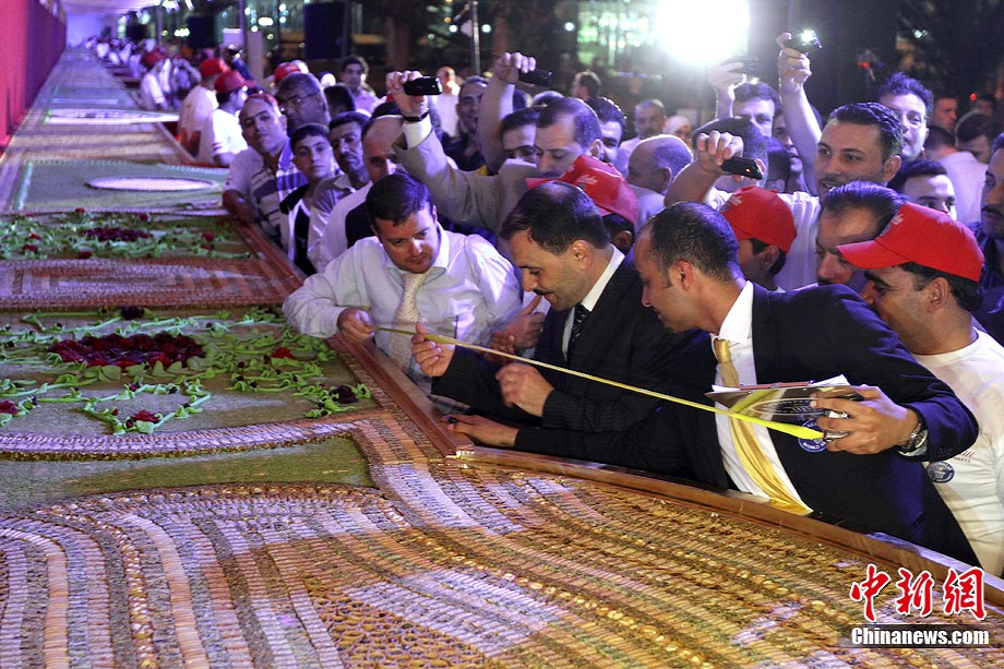 7月14日,叙利亚的面包师们在大马士革制作了一个长112米的阿拉伯甜点,创造了新的吉尼斯世界纪录。