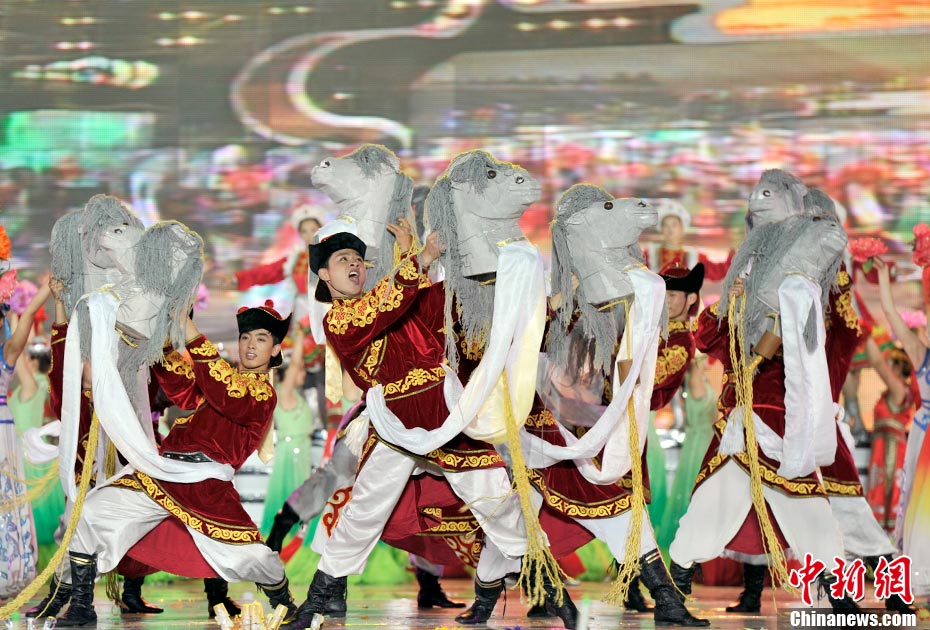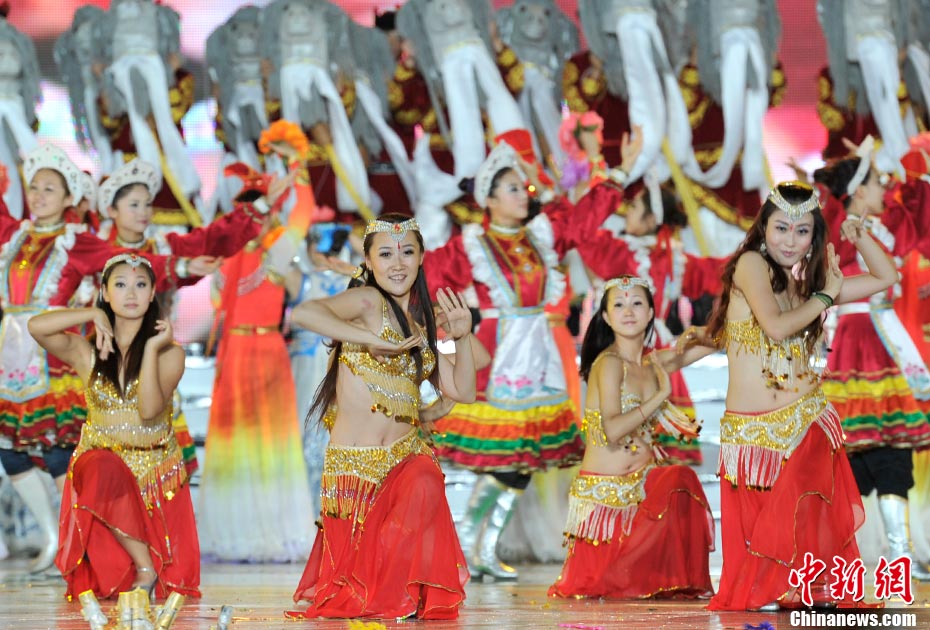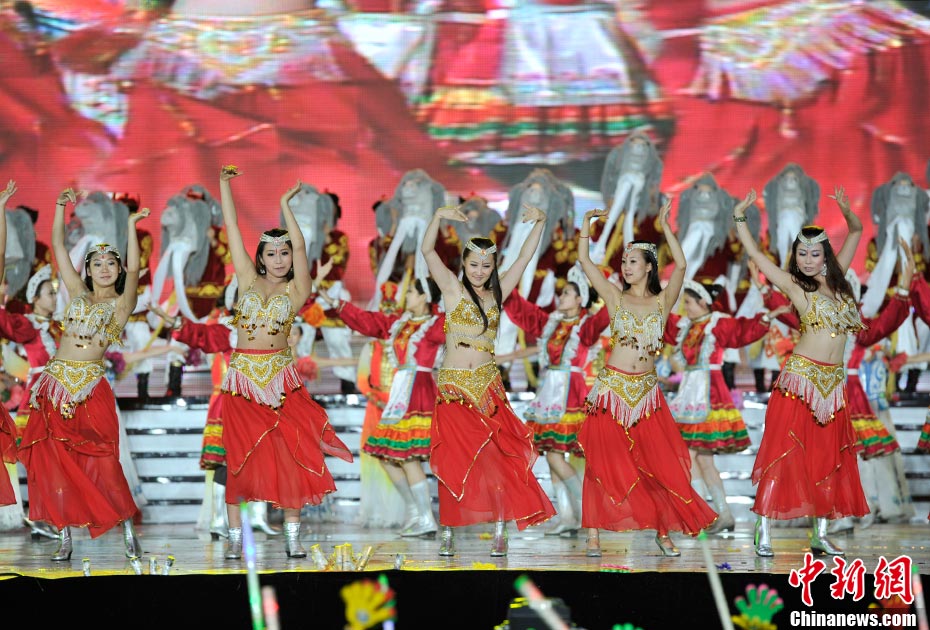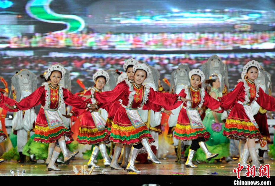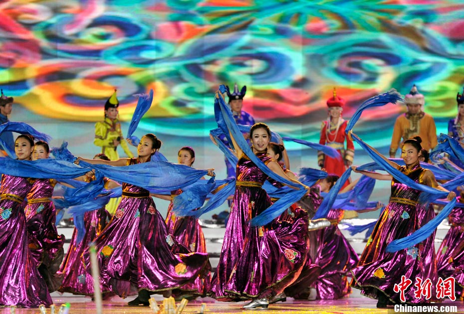 7月16日晚,第十一届中国·呼和浩特昭君文化节在呼和浩特体育场绚丽开幕,充分展现了塞外青城的独特魅力。中新网记者 金硕 摄