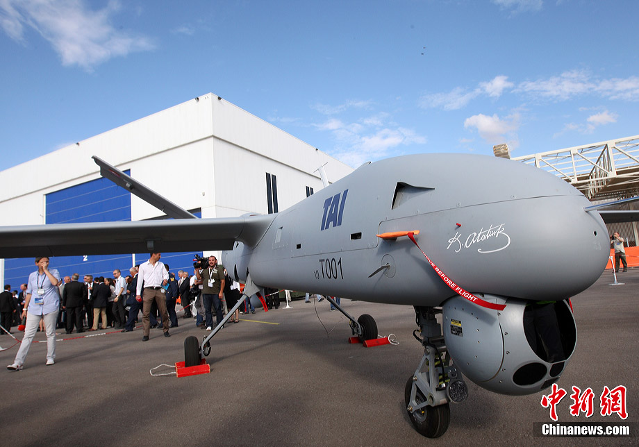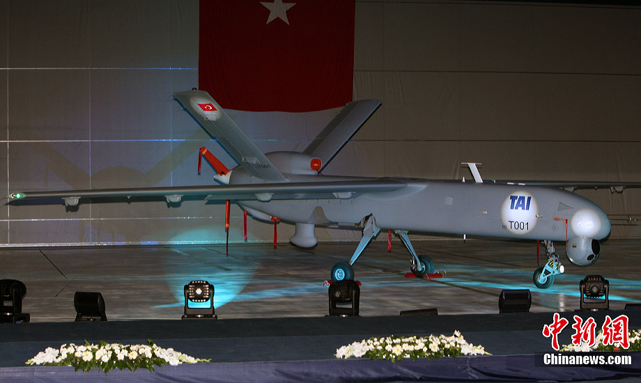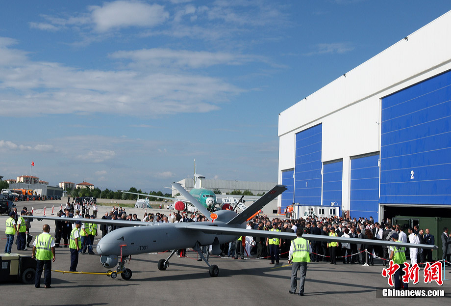 当地时间7月16日,土耳其首架无人驾驶侦察机在首都安卡拉附近的空军基地亮相。该侦察机是由土耳其航空航天工业公司研发的。