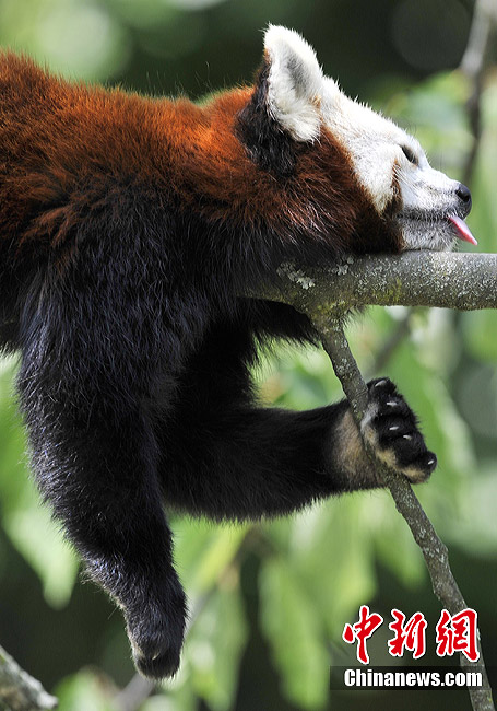 7月14日,德国克龙贝格动物园内的小熊猫忍受着酷热。