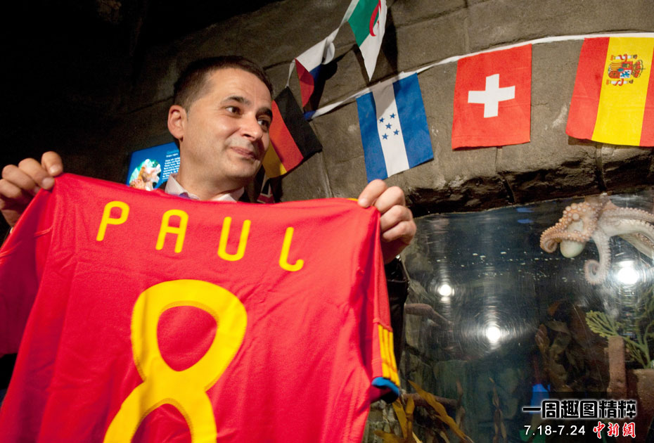曾在2010年南非世界杯上大放异彩的“章鱼哥”保罗再获殊荣。西班牙卡瓦利诺市市长在德国奥博豪森水族馆正式赠送给保罗一件印有它名字的西班牙队队服和保罗自己的青铜像,称保罗为“城市最好的朋友”。