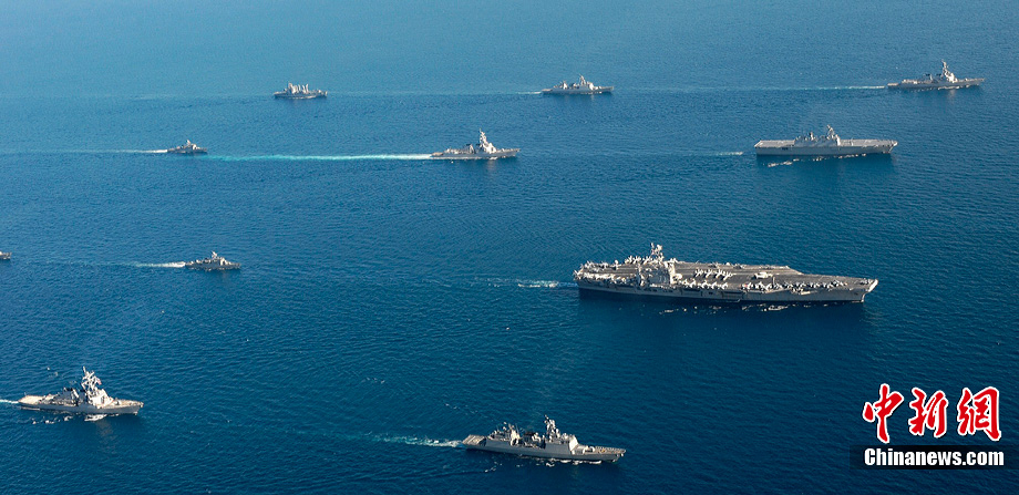 7月28日,韩国与美国结束在韩国东部海域(日本海)举行的为期四天的联合军事演习。这次名为“不屈意志”的联合军演是从25日清晨开始的,美国海军“乔治·华盛顿”号航空母舰、号称“亚洲最大”的韩国“独岛”号运输舰、“文武大王”号和“崔永”号韩国型驱逐舰、韩美两国潜水艇等韩美舰艇当天陆续离开停泊的釜山港和镇海港,前往韩国以东的日本海会合。除20多艘舰艇外,美国最新型F-22“猛禽”战斗机和韩国F-16、F-15K等200多架飞机参加了本次演习,韩美投入的兵力达到8000多人。
