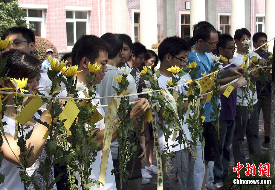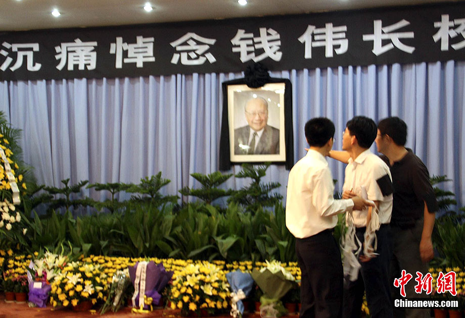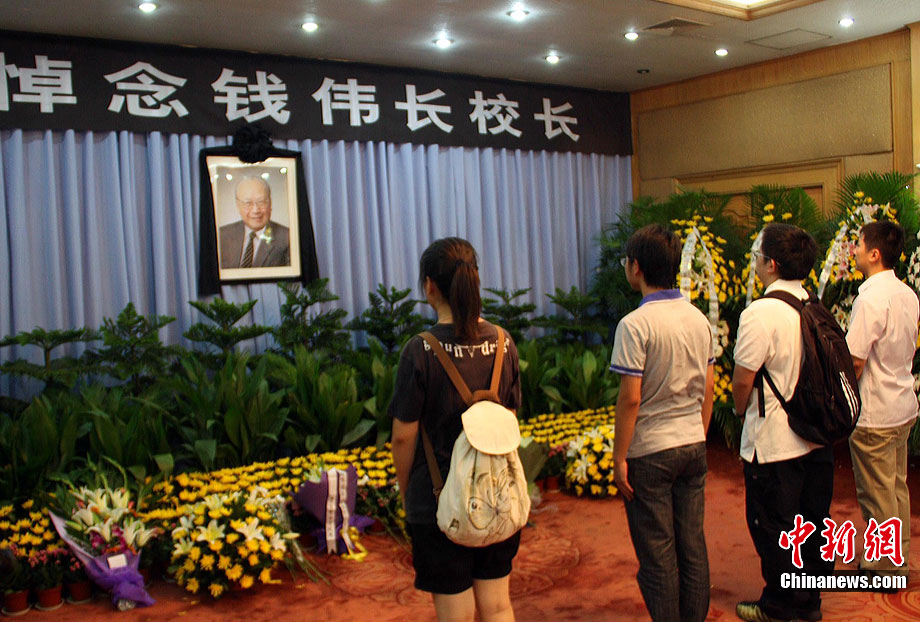 7月31日,上海大学校园内布置起灵堂,供前来悼念一代科学名家的各方民众和上海大学师生在此吊唁。中新社发 张嘉森 摄