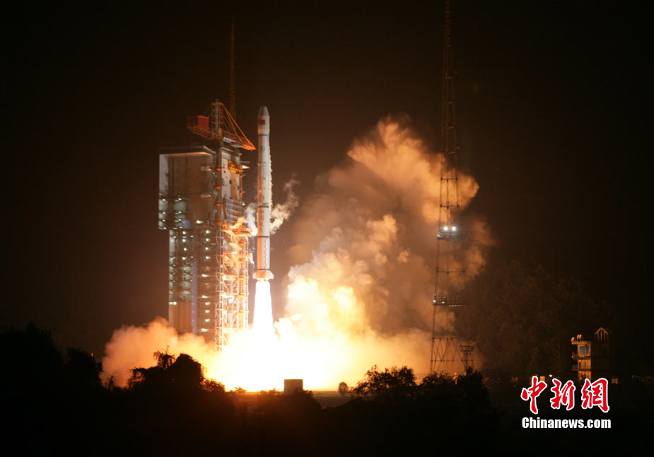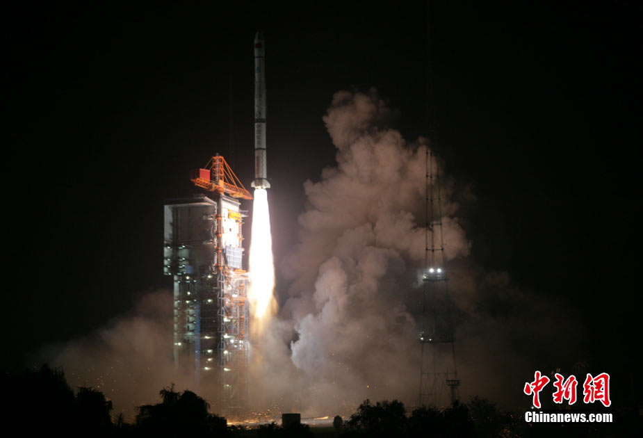 北京时间8月1日5时30分,中国在西昌卫星发射中心用“长征三号甲”运载火箭,将第五颗北斗导航卫星成功送入太空预定转移轨道。这是一颗倾斜地球同步轨道卫星,也是中国今年连续发射的第3颗北斗导航系统组网卫星。中新社发 杜财 摄