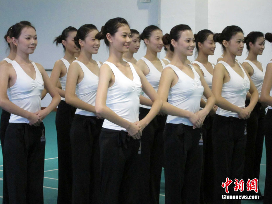 日前,500多位来自全国各地的“亚运天使”在南方医科大学顺德校区校园中,为亚运赛场上的精彩亮相紧张辛苦的训练。广州亚运会期间,颁奖礼仪团队将完成476场颁奖仪式,合计颁发3989枚奖牌。中新社发 柯小军 摄