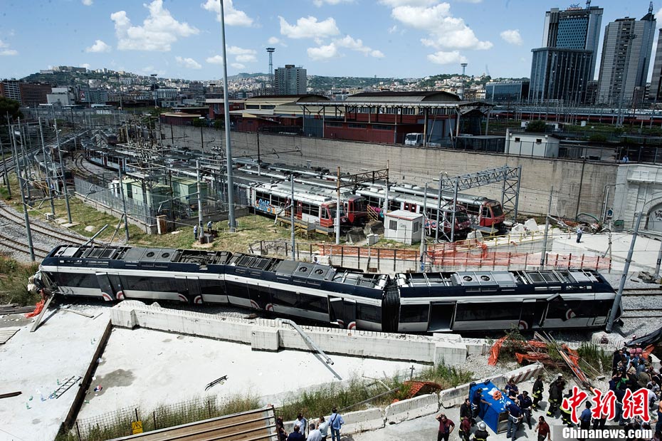 8月6日,意大利那不勒斯附近的一列火车发生出轨事故,造成1人死亡,30余人受伤。在事故现场,救援人员在紧张工作。