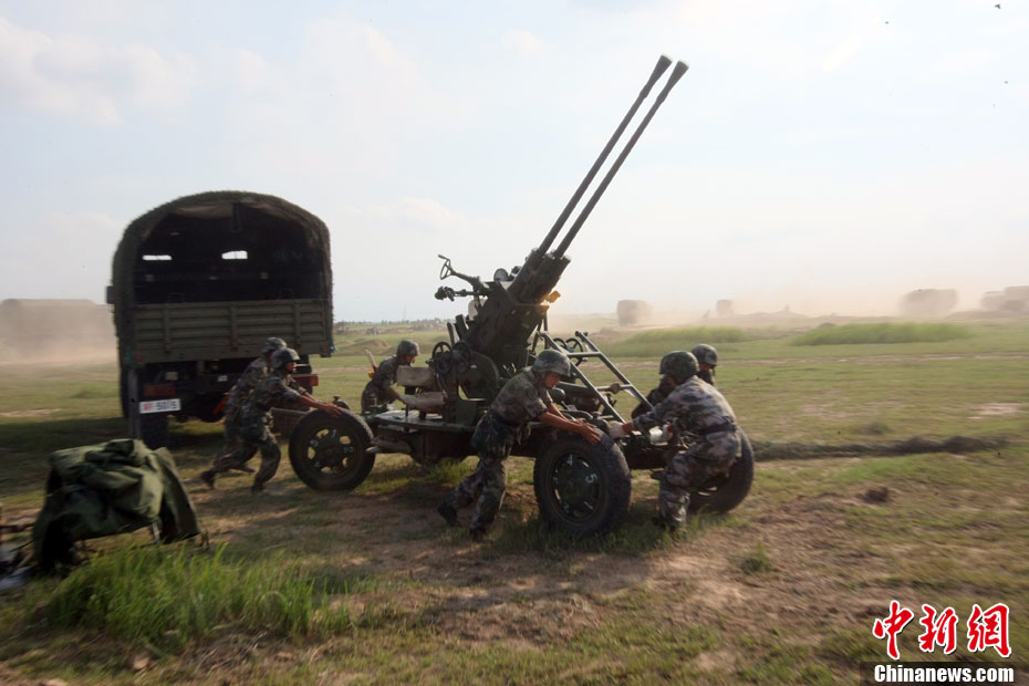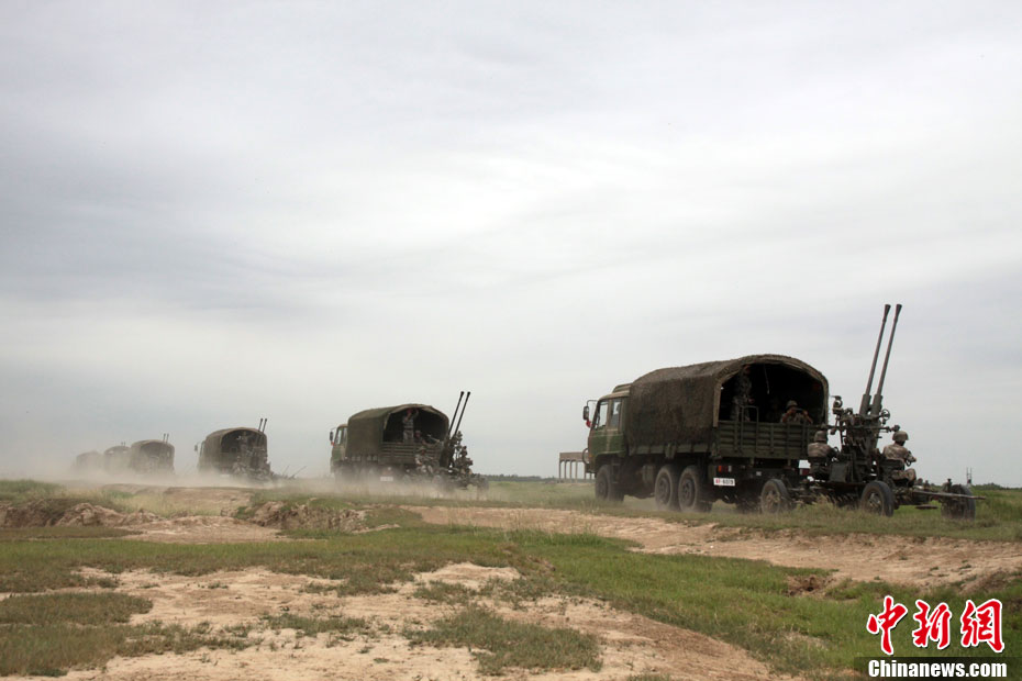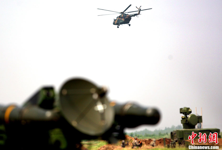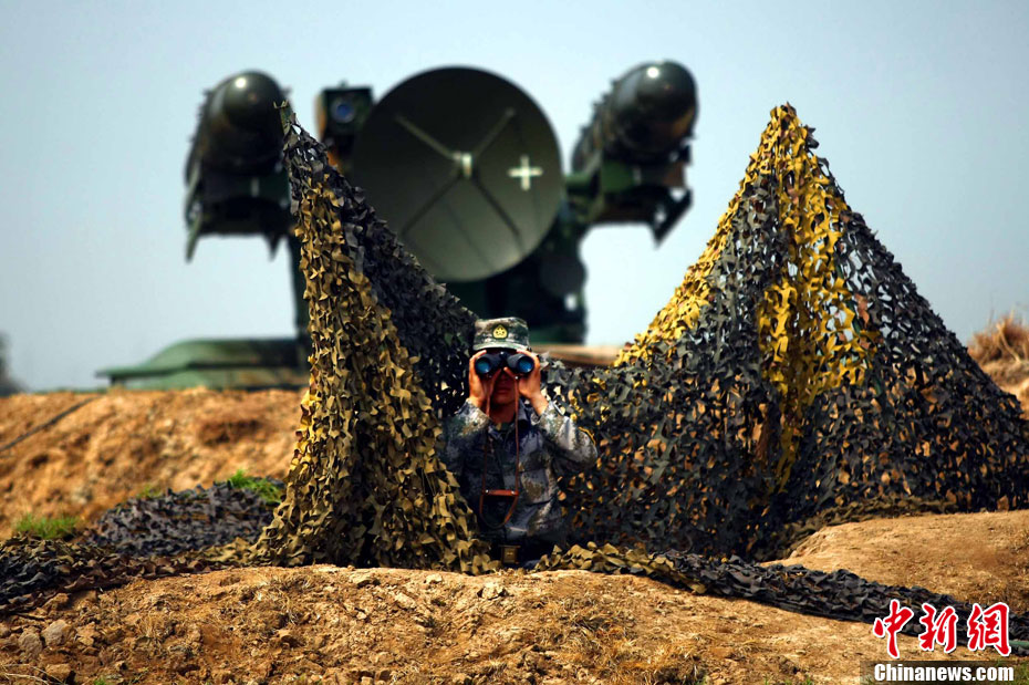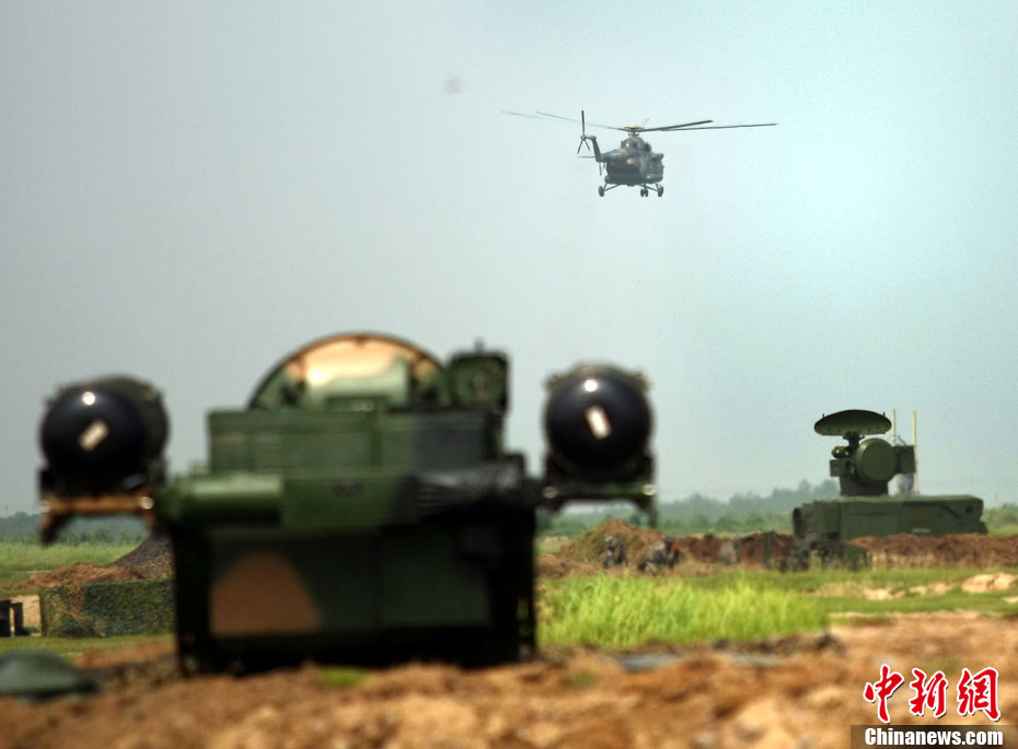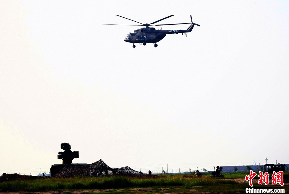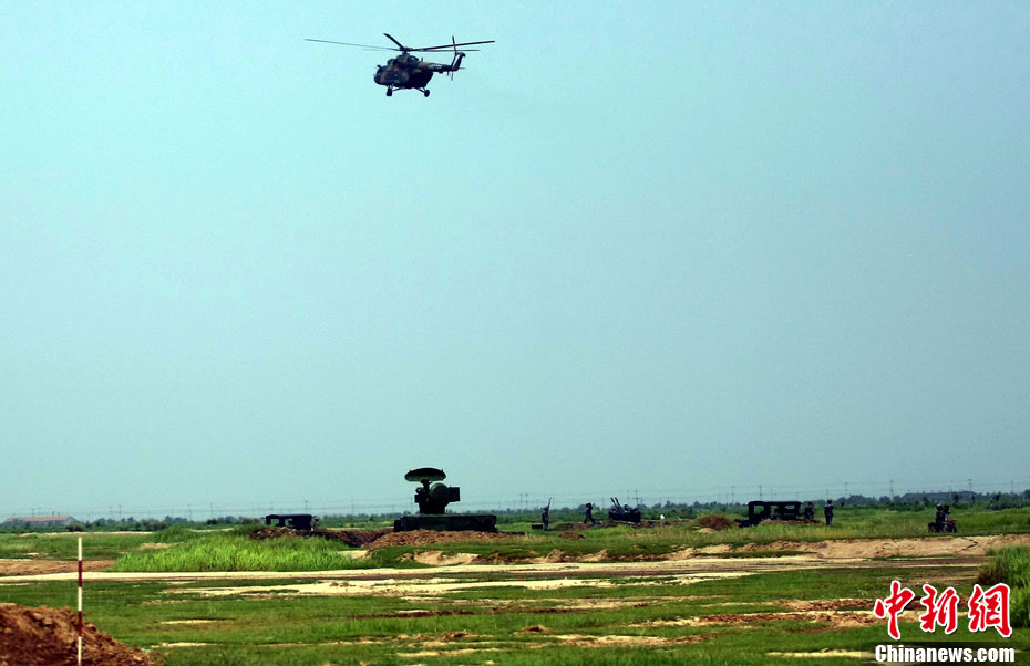 自8月3日在鲁豫两省全面铺开的这场防空大练兵,按检验性、研究性两个阶段实施,以紧急疏散、作战筹划、侦察预警、信息对抗、对空抗击、指挥所、阵地转移和研究、试验、论证陆军防空部队各类主战作战单元在复杂电磁环境下对空作战的对策为课题,主要突出空地实际对抗、单元合成训练、信息系统支撑、复杂电磁环境构设、作战理论牵引等特点,出动侦察机、、歼击机、直升机等多机种、多批次、多架次,地面防空部队、民兵、预备役力量等万余人参加演练,演练按照实战红蓝对抗、采取统一背景、全时段、全天候连续进行。中新社发 宋吉河 摄