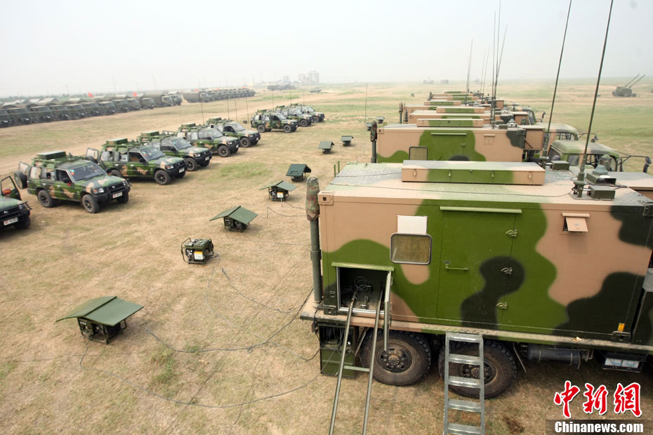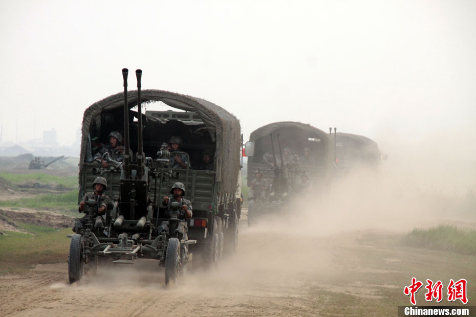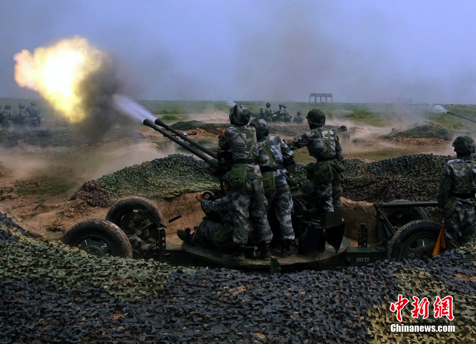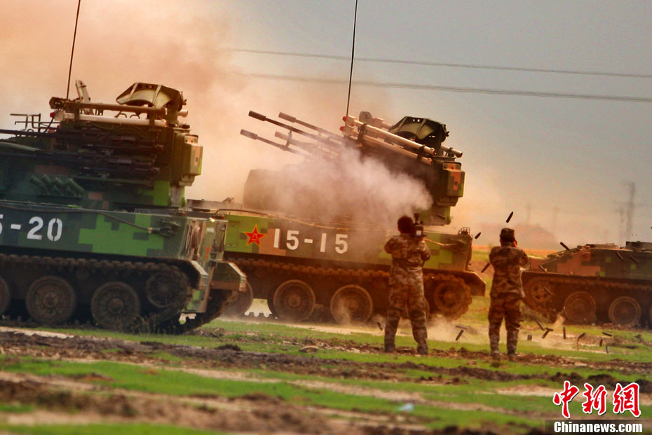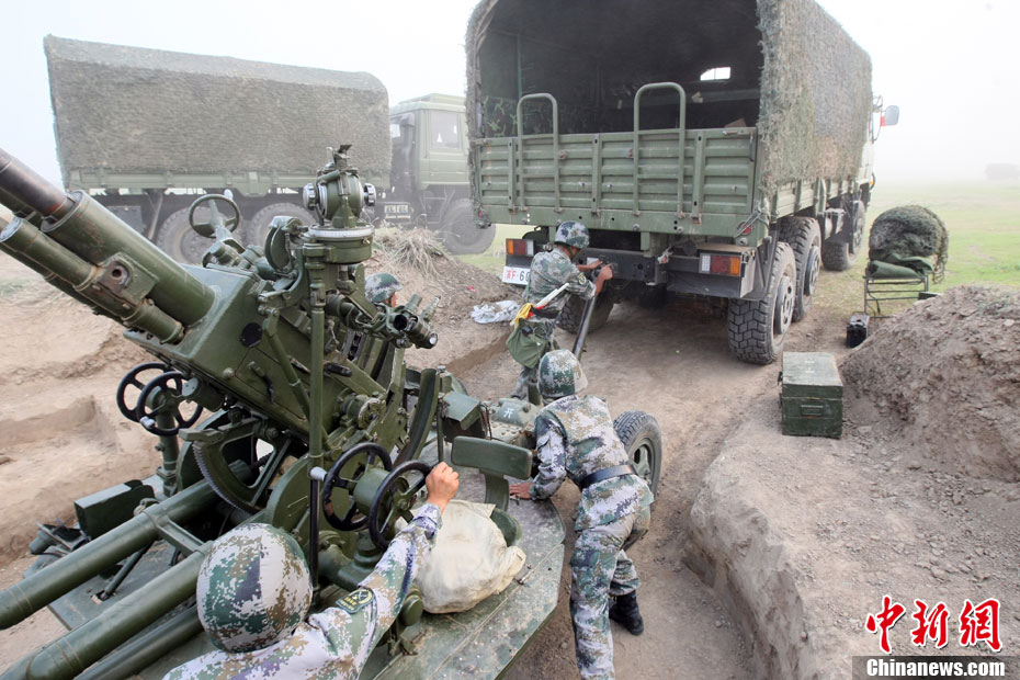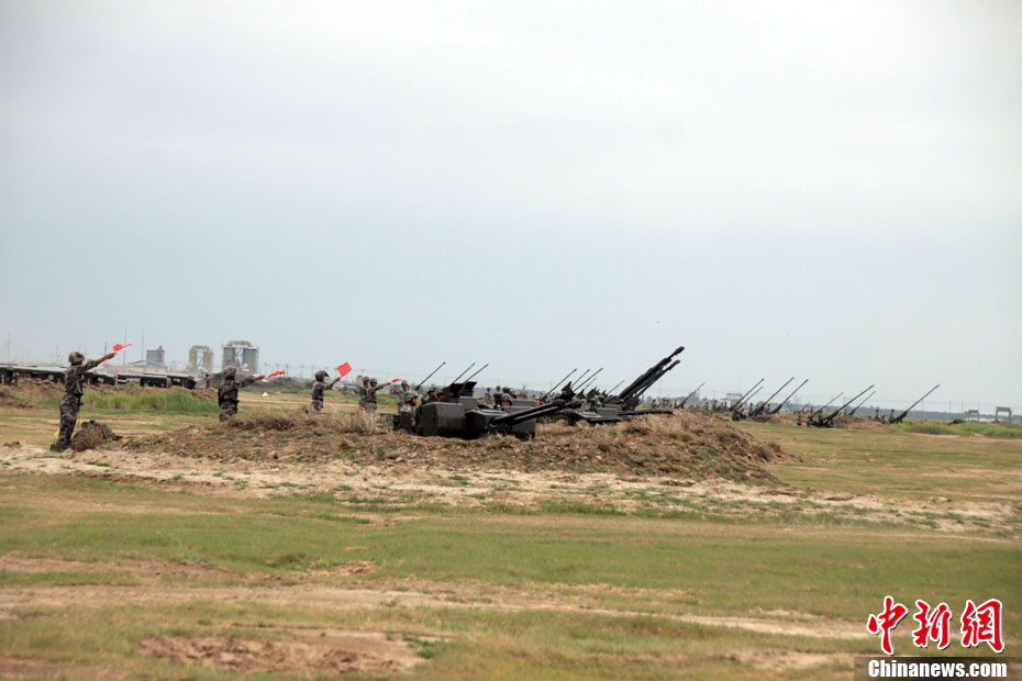 自8月3日在鲁豫两省全面铺开的这场防空大练兵,按检验性、研究性两个阶段实施,以紧急疏散、作战筹划、侦察预警、信息对抗、对空抗击、指挥所、阵地转移和研究、试验、论证陆军防空部队各类主战作战单元在复杂电磁环境下对空作战的对策为课题,主要突出空地实际对抗、单元合成训练、信息系统支撑、复杂电磁环境构设、作战理论牵引等特点,出动侦察机、、歼击机、直升机等多机种、多批次、多架次,地面防空部队、民兵、预备役力量等万余人参加演练,演练按照实战红蓝对抗、采取统一背景、全时段、全天候连续进行。中新社发 宋吉河 摄
