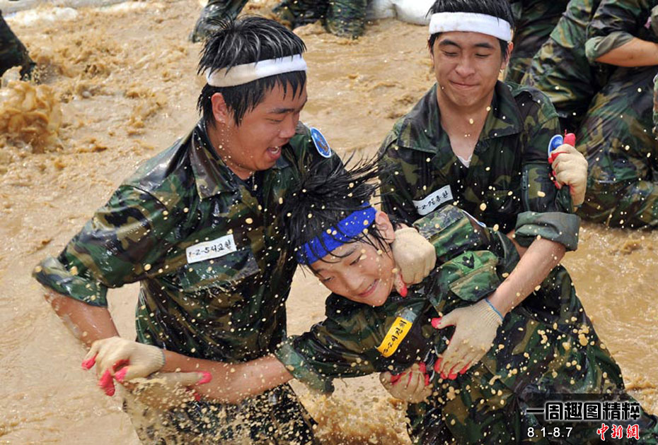 8月4日,韩国首尔,200名学生在富川特种作战司令部进行军事训练,锻炼身心、磨练意志。