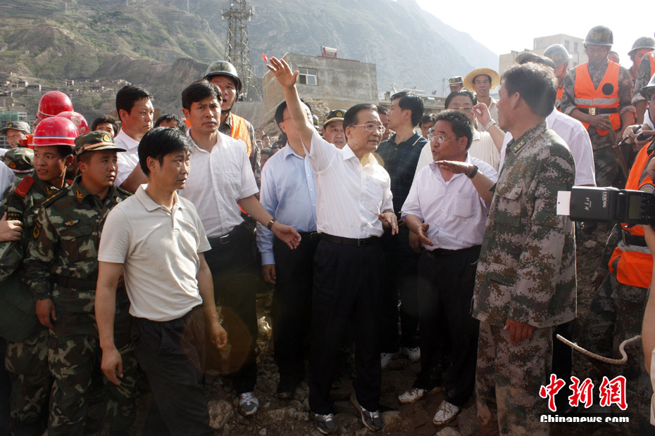 8月8日凌晨,温家宝总理下午5点左右已抵达甘肃舟曲三眼村救灾现场。 中新社发 康元彬 摄 图片来源:cnsphoto