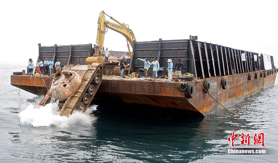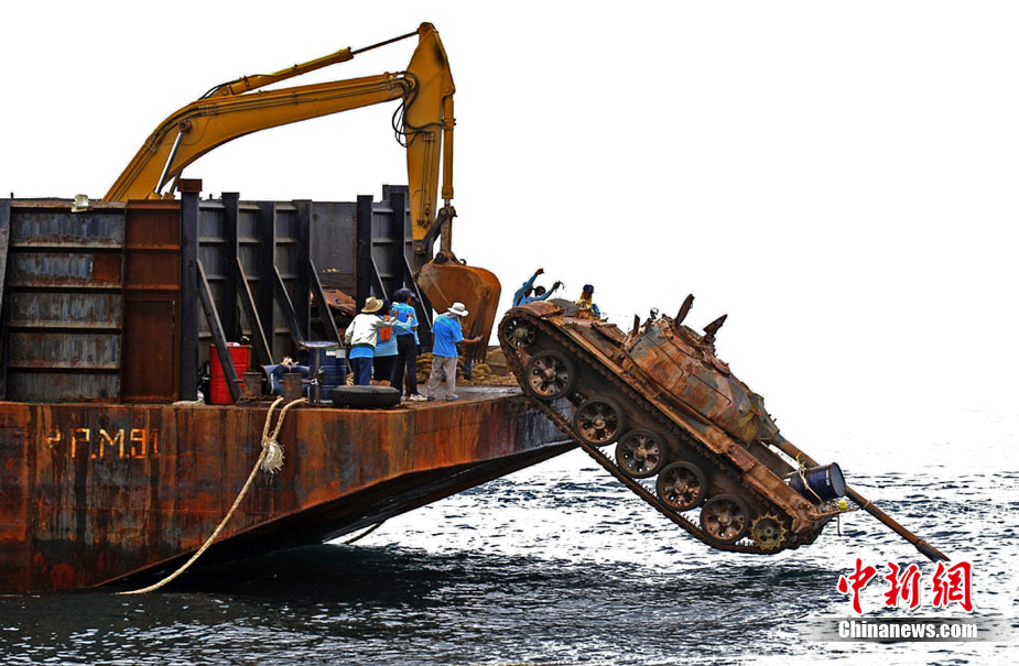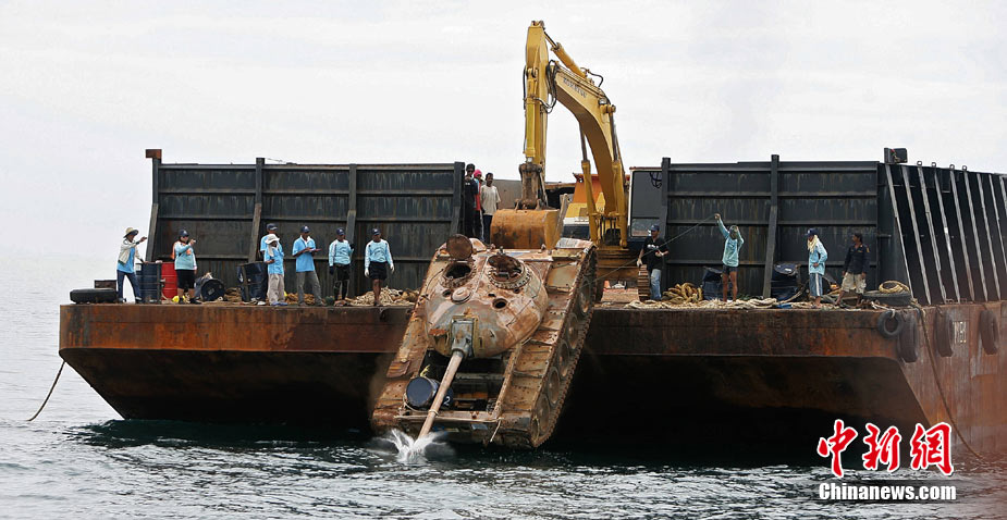 泰国将25辆坦克丢进大海 为海鱼“建房”