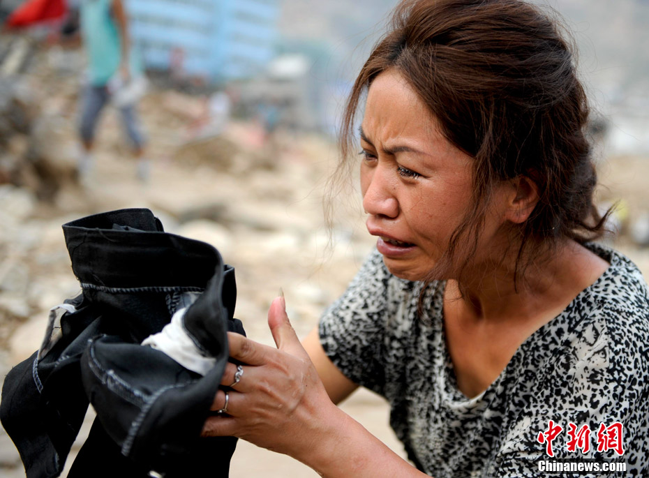 2010年8月11日,甘肃舟曲县发生特大泥石流灾害后的第四天,目前救援工作仍在继续。截至10日17时,泥石流灾害死亡人数已达702人,失踪人员1042人,42人重伤。中新网记者 金硕 摄