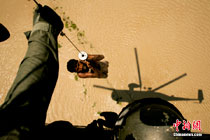 巴灾民拽飞机逃离洪水