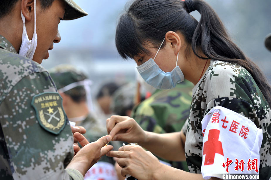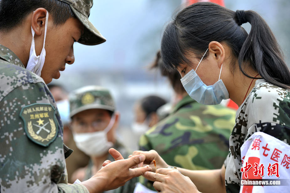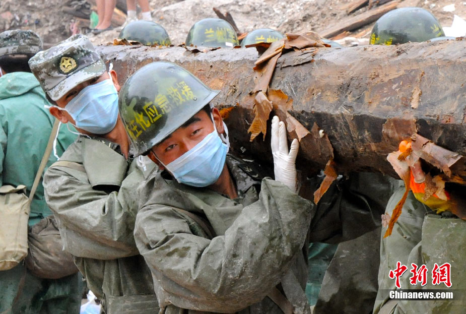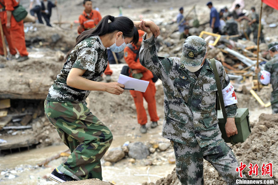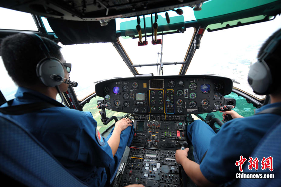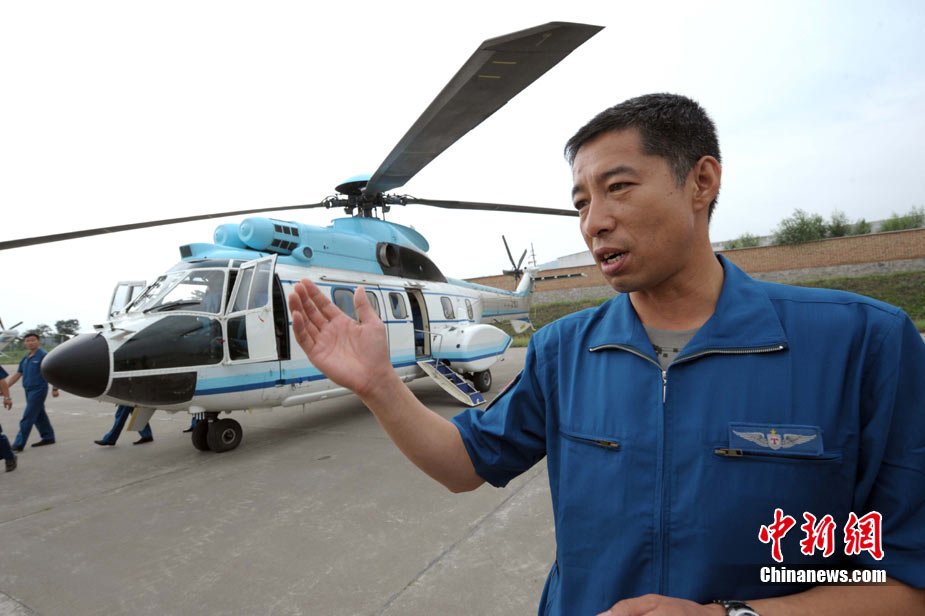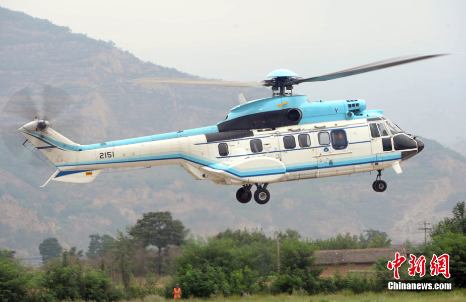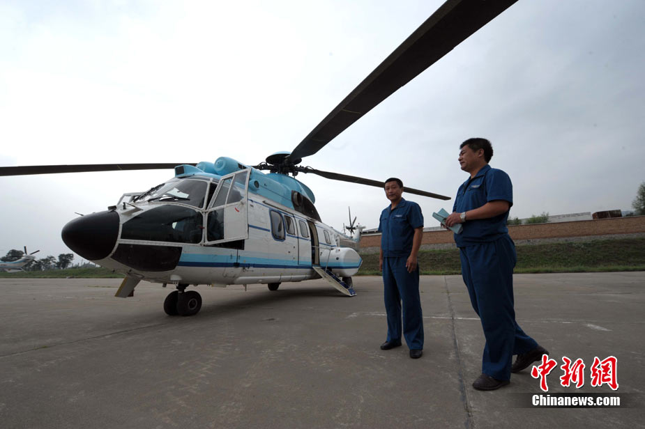 8月12日,甘肃舟曲、天水等地再次强降雨,两河口至舟曲公路南峪大滑坡致交通完全中断;中国空军美洲豹机组在天水机场待命,随时紧急运送人员暨救灾物质。中新社发 陈文 摄