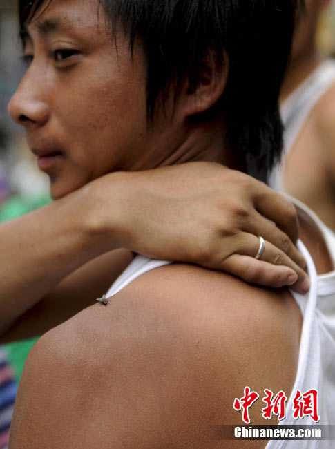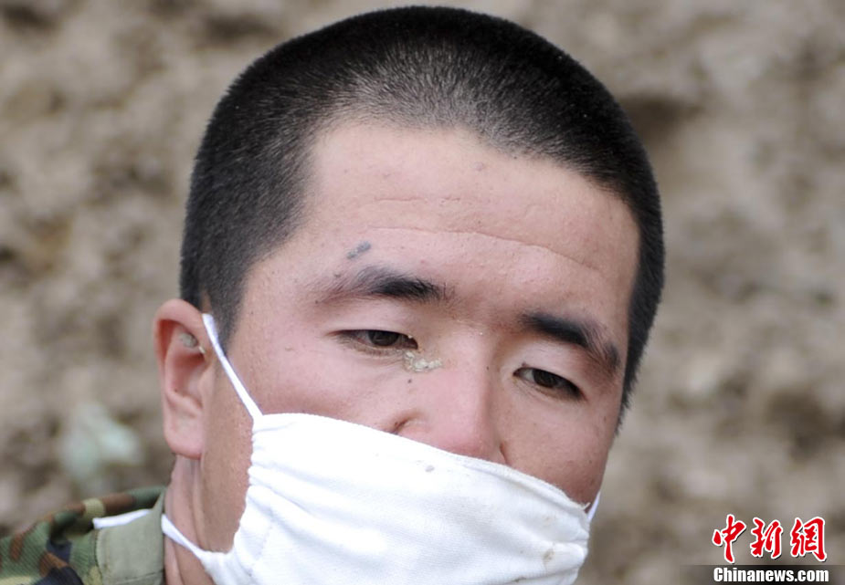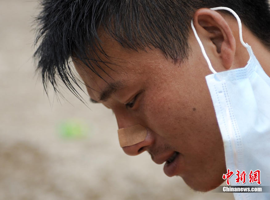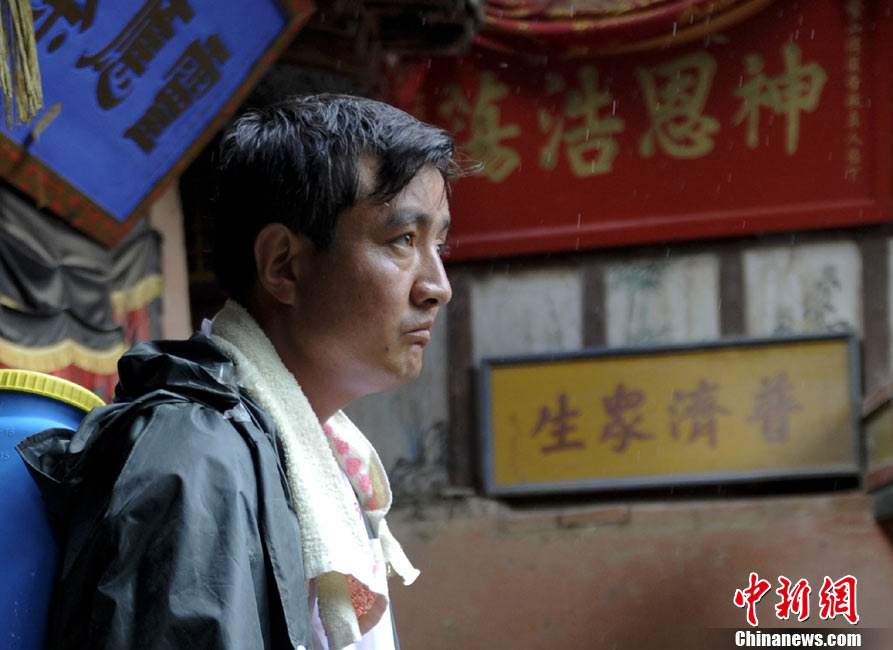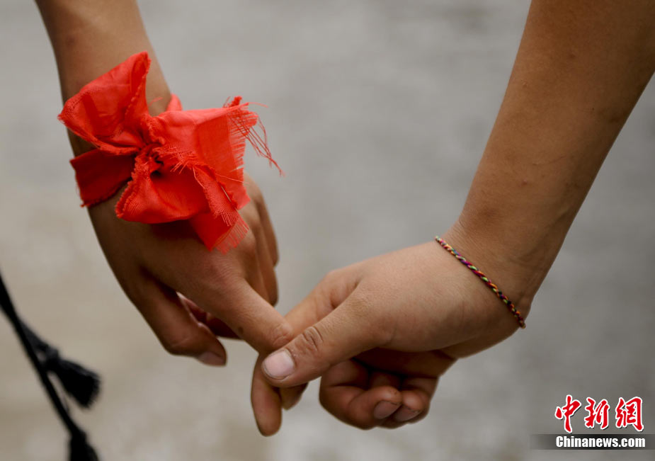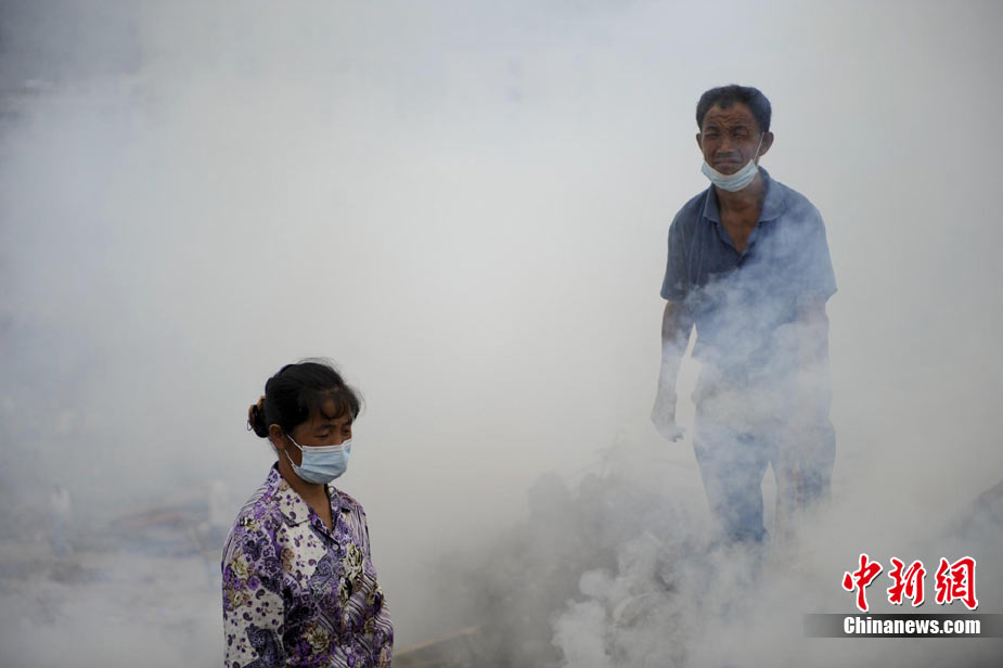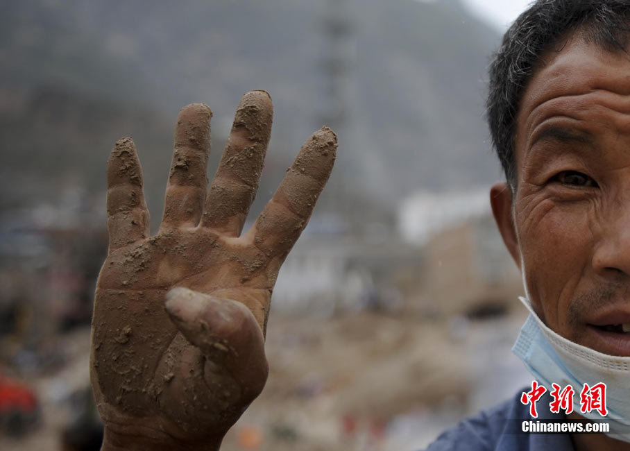 舟曲一位居民整理亲人遗物的手,他有四位亲人遇难。8月8日凌晨,甘肃省舟曲县因强降雨引发滑坡泥石流,造成重大人员伤亡,电力、交通、通讯中断。中新社记者 廖攀摄