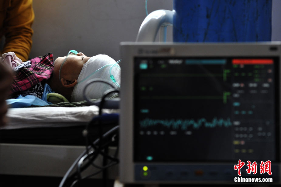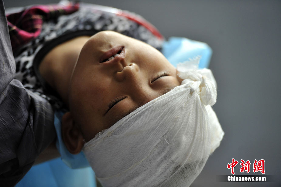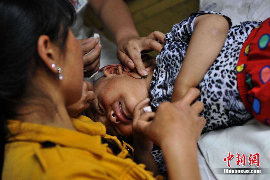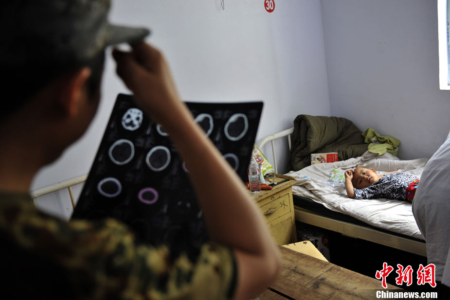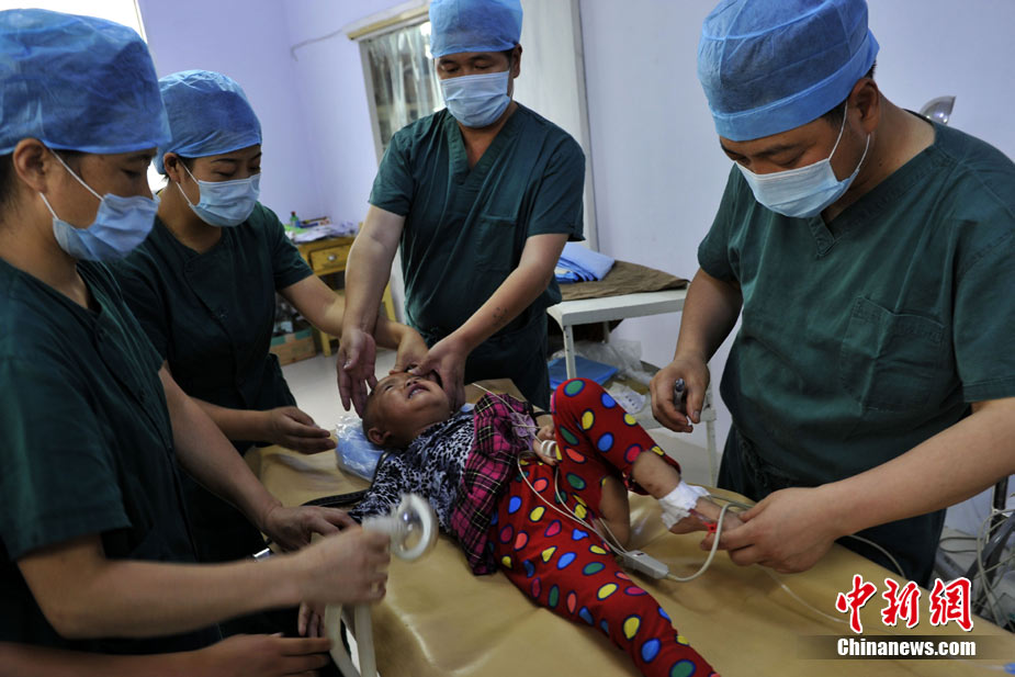 中新社舟曲8月13日电 题:于无声处——直击舟曲受伤儿童钻颅手术