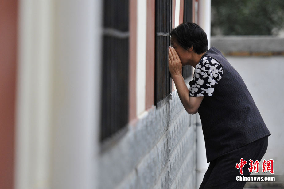 孩子的奶奶趴在手术室的窗户上向内张望,薛红芳孤零零地坐在排椅上望着墙壁发愣,身体前倾,双手抓住椅子边沿使劲,眼圈不一会又红了。