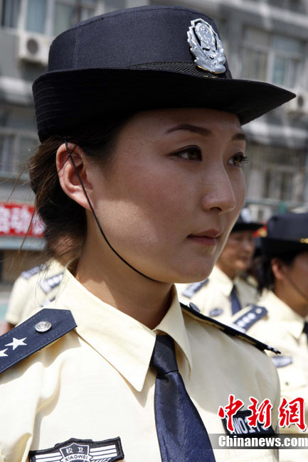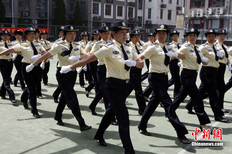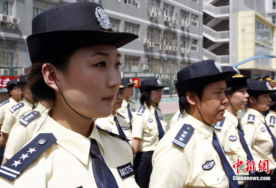 8月14日,北京警方向社会公开招募的600名校园安全护卫队员圆满结束培训,经过逐一面试、统一体检、严格政审以及正规技能培训的这批校园护卫队员将于九月暑期开学后正式上岗。图为首批培训结束的女护卫队员。中新社发 任海霞 摄