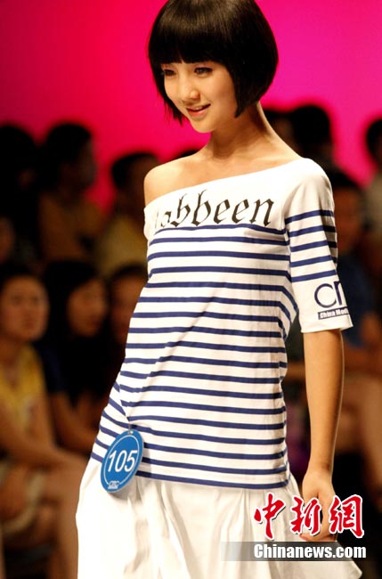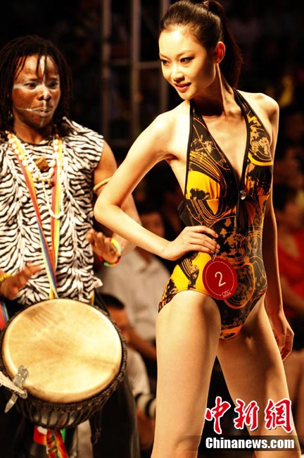 8月14日晚,“星美星感觉”2010中国模特大会结业颁奖典礼暨星美之夜时尚PARTY在北京怀柔中国影视界星美小镇影视基地举行,大会以全国性模特青年训练营的形式,用名师、明星、名模独特的视角点拨灵动心智,发掘未来新星。来自全国15个省、40多个城市的150名模特新星们参加了专业培训。图为2010中国模特大会新秀泳装展示风采。中新社发 钱兴强 摄