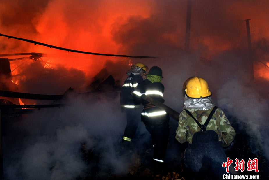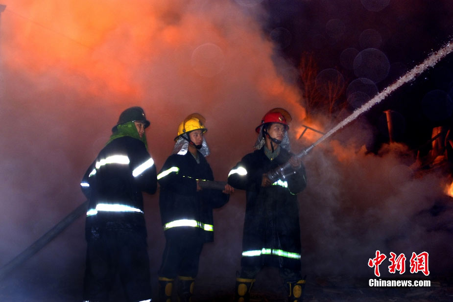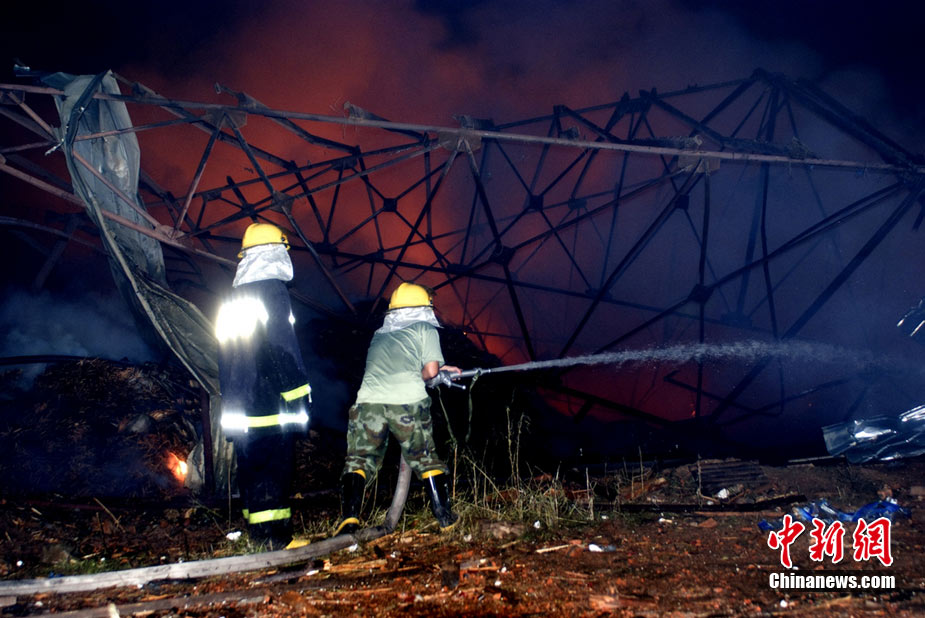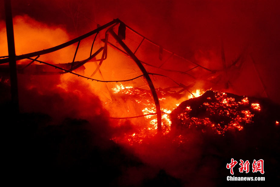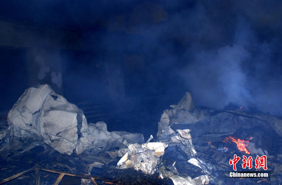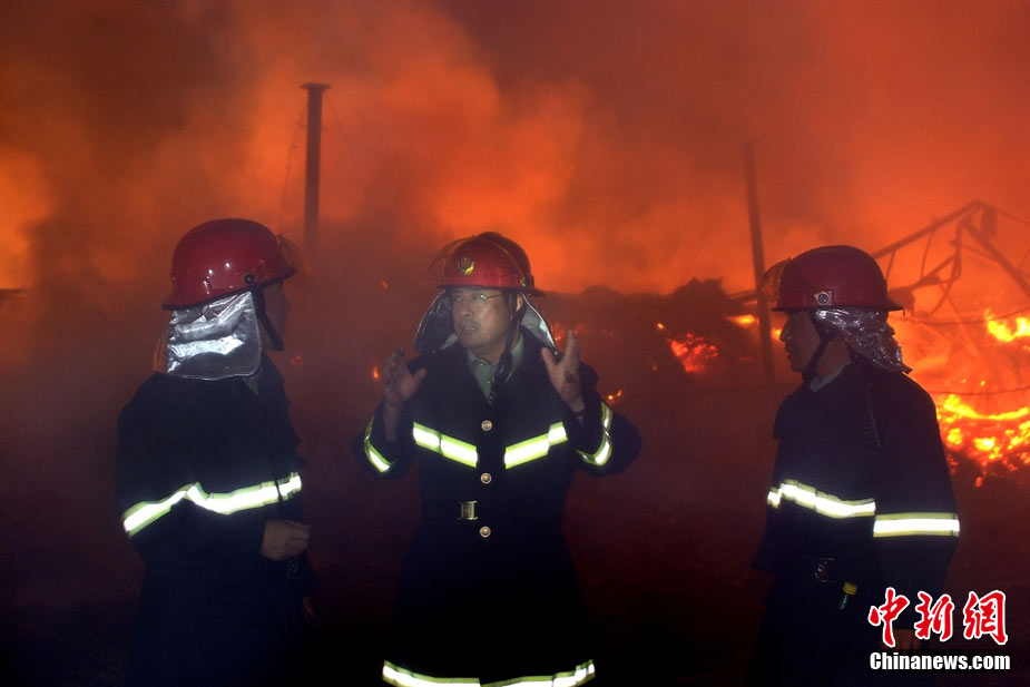 2010年8月16日9时40分左右,黑龙江省伊春市乌马河区华利实业有限公司鞭炮厂发生持续爆炸。爆炸发生后,伊春市委、市政府紧急启动爆炸事件、医疗救护应急处置预案,紧急调派公安、消防、医疗救护、武警部队、驻军部队2000余人及时进行抢救,经过8个多小时的奋力鏖战,因爆炸引起的火灾已全部扑灭。截至17日零时,发生在当地乌马河区的鞭炮厂爆炸已造成19人死亡,5人失踪,住院伤者153人。准确原因正在进一步调查之中。图为16日夜23时30分,武警消防部队官兵不辞辛苦仍战斗在火场一线清理残火。陈刚 摄