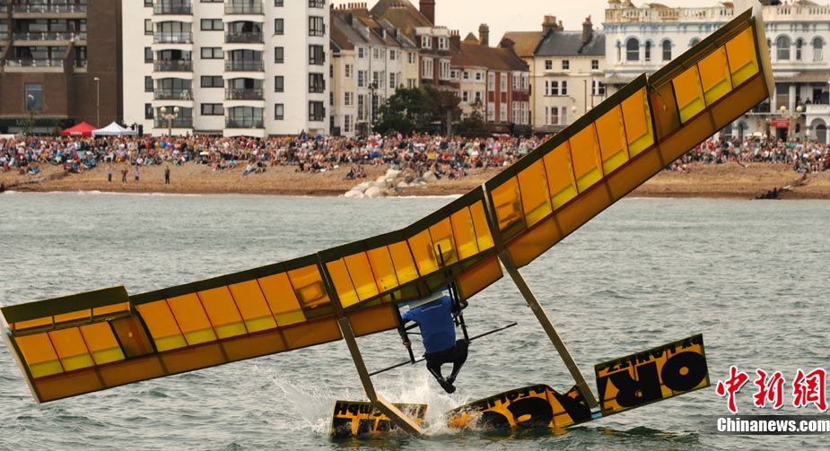 近日,一年一度的沃辛国际鸟人大赛在英国苏塞克斯的一个海边小镇举行。选手们不仅带来造型奇特的飞行装置,还身着搞笑服装以吸引观众注意。