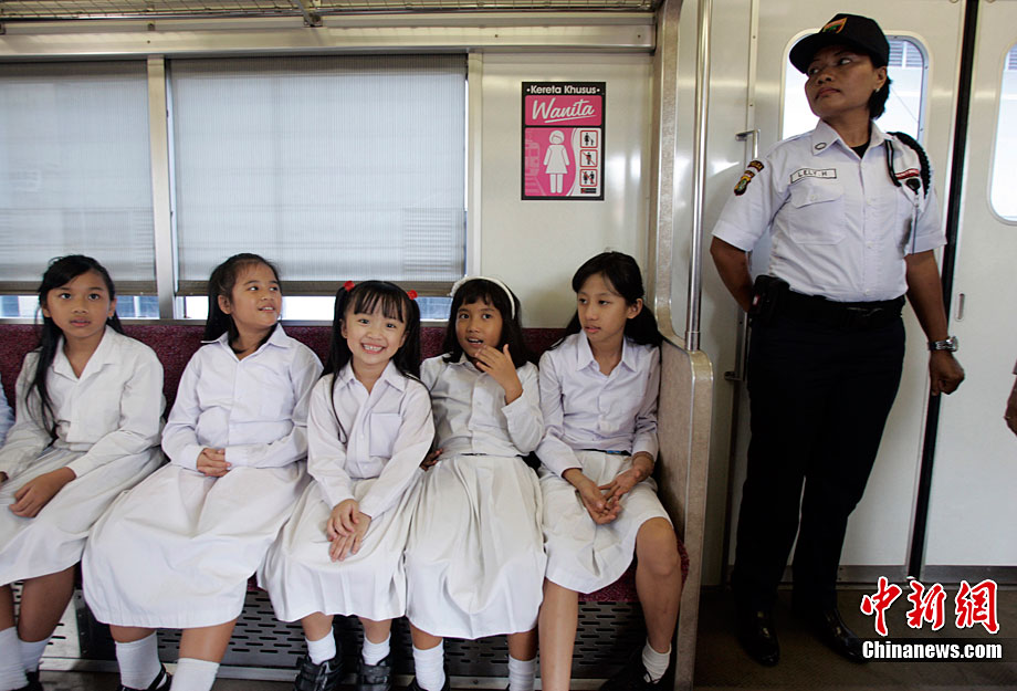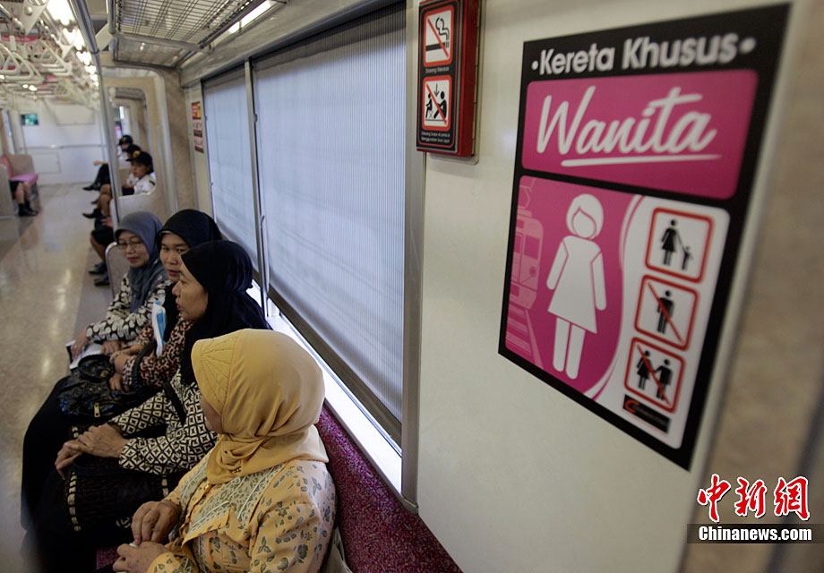 当地时间8月18日,印度尼西亚从雅加达开往茂物的列车上推出妇女专用列车车厢以应对在公共交通工具上时有发生的性骚扰事件。据铁路运营公司官员称:“我们想提高服务质量,保护女性乘客,让她们感觉更加安全。”该官员称,妇女专用列车车厢只是一种选择,如女性乘客愿意,她们仍可乘坐其他车厢。