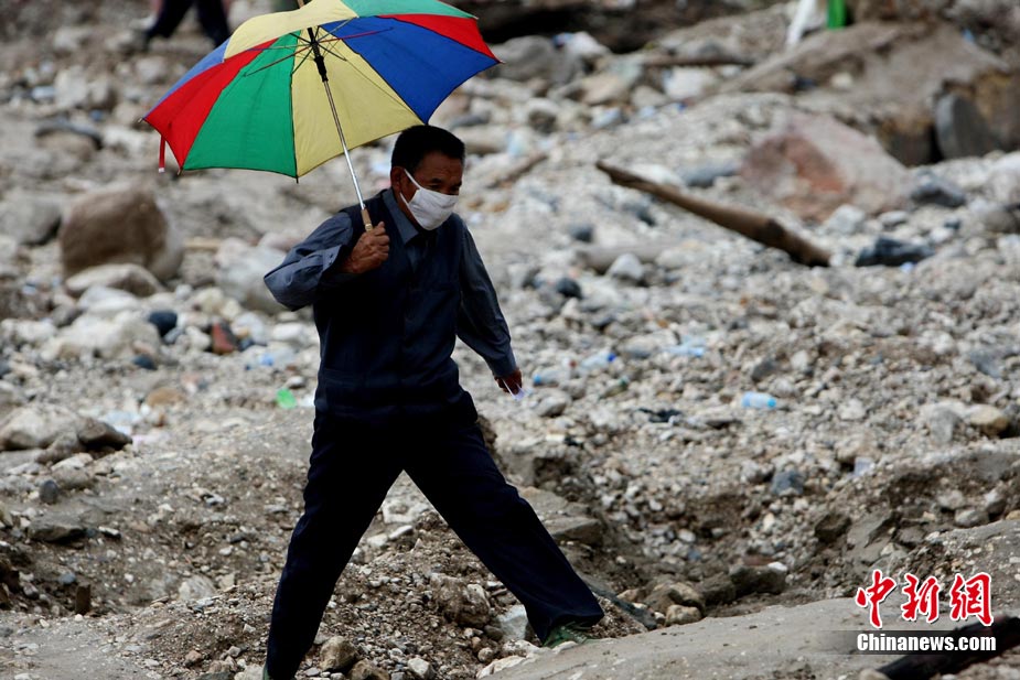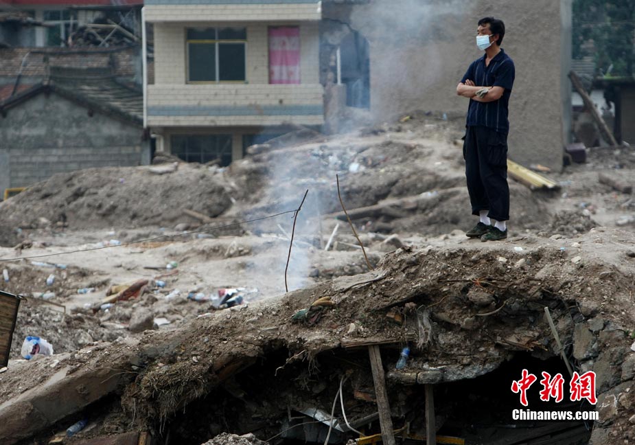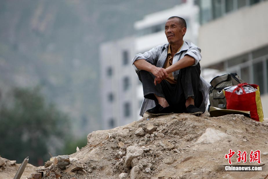 甘肃舟曲县发生特大泥石流后,截至8月19日,已导致1364人遇难,401人失踪,已解救1243人。洪灾已过去十多天,虽然废墟中已无生命迹象,但洪灾生还者还在守望舟曲不愿离去。目前,抢险救灾工作由应急救援逐步转到受灾群众进一步安置、河道淤泥废墟清理、恢复正常生产生活秩序和重建规划。中新社记者 杜洋 摄