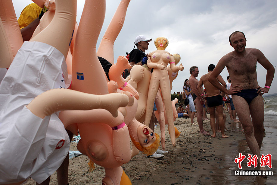 当地时间8月22日,一场别开声面的搞笑游泳比赛在俄罗斯西伯利亚城市新西伯利亚举行,数十名俄罗斯壮汉怀抱“充气娃娃”跃入河中进行游泳比赛。不过,从比赛实况来看,很显然这些参赛者并没有把充气娃娃当“伴侣”来对待,多半都当成游泳圈,使得气氛既搞笑却又带点诡异。
