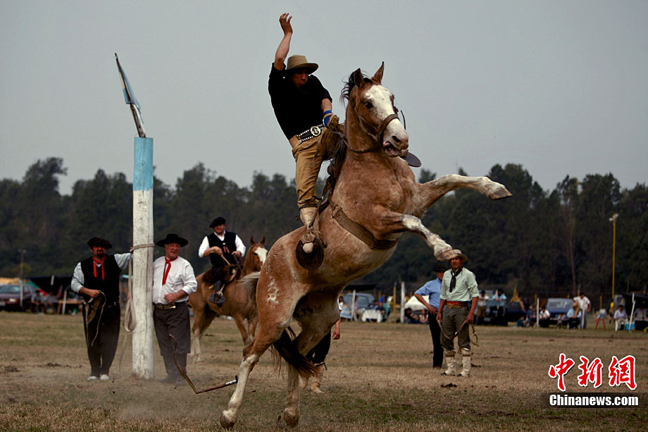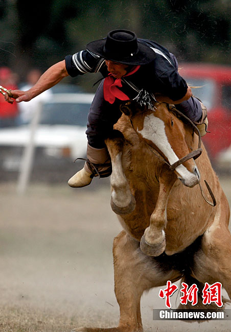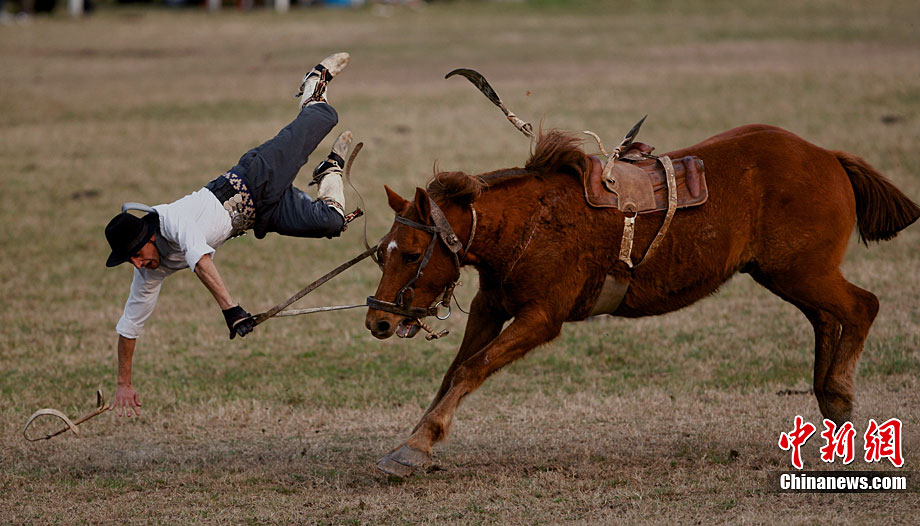 阿根廷高乔民俗节上的惊险马术表演