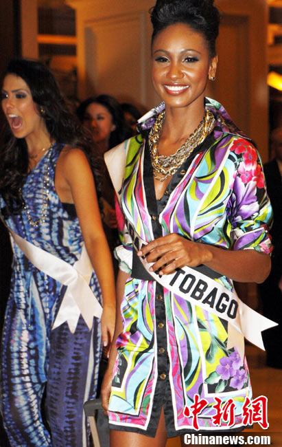 当地时间8月22日 ,正在美国拉斯维加斯参加第59届“环球小姐”(Miss Universe)总决赛的各国佳丽进入最后彩排,在紧张的训练排练之余,佳丽们利用15分钟的就餐时间谈笑风声。图为环球中国小姐唐雯拉斯维加斯备战决赛。中新社记者 钱兴强 摄