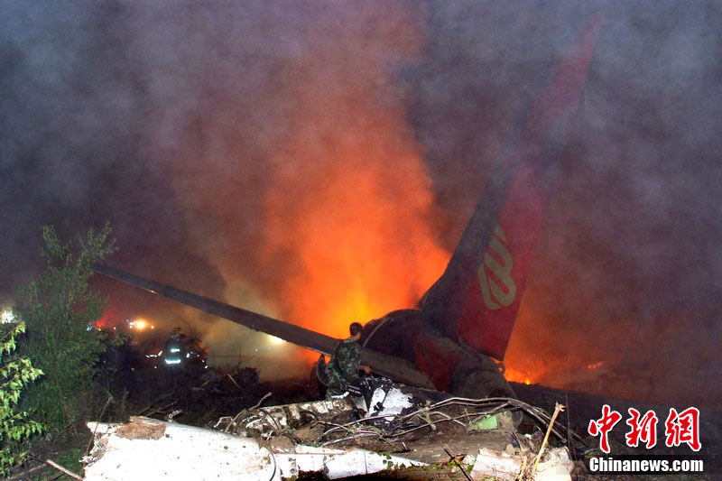 24日21时36分许,河南航空有限公司(原鲲鹏航空公司)一架由哈尔滨飞往伊春的E190型飞机在抵达伊春机场降落时失事,机上包括5名机组人员在内共96人。失事现场发现42具遇难者遗体,其余54人获救送医,目前无生命危险。图为飞机失事现场 张恩普 王志富 摄