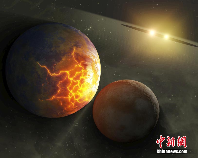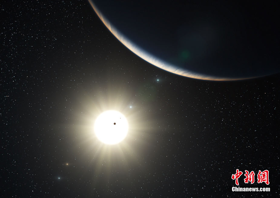 近日,科学家发现了一个距离地球127光年的与太阳系十分类似的巨大星系。美国宇航局太空望远镜在太阳系外侦测到了5颗行星。这5颗行星与其母星的距离与太阳系内行星与太阳的距离十分相似。天文学家正在寻找另外2颗行星存在的证据。图为该星系的艺术想象图。