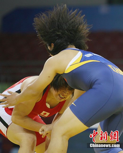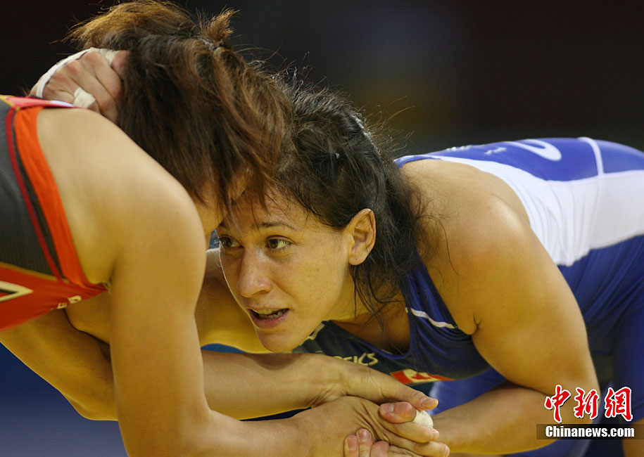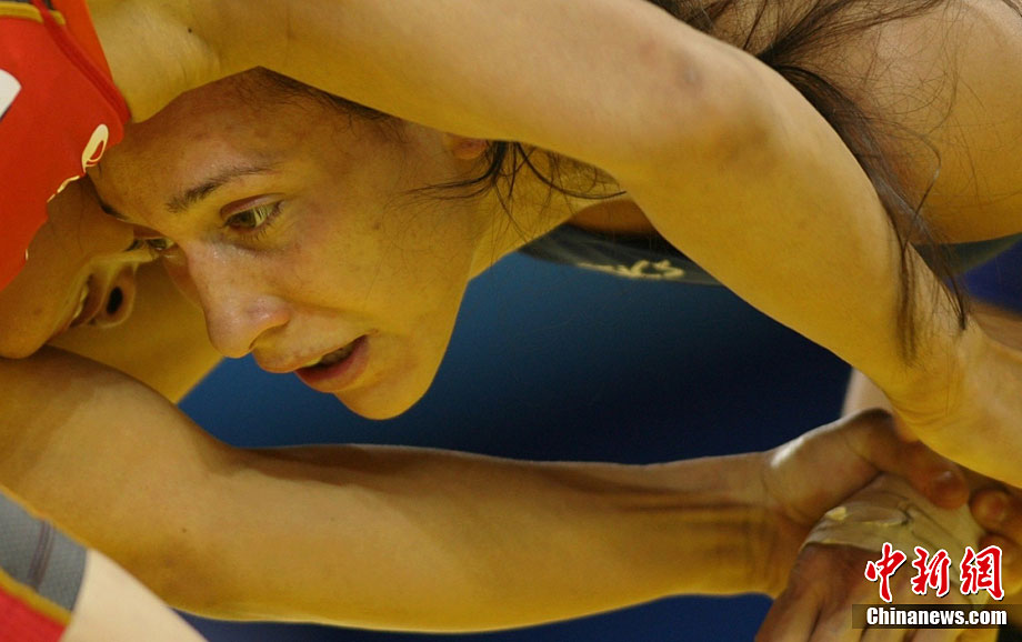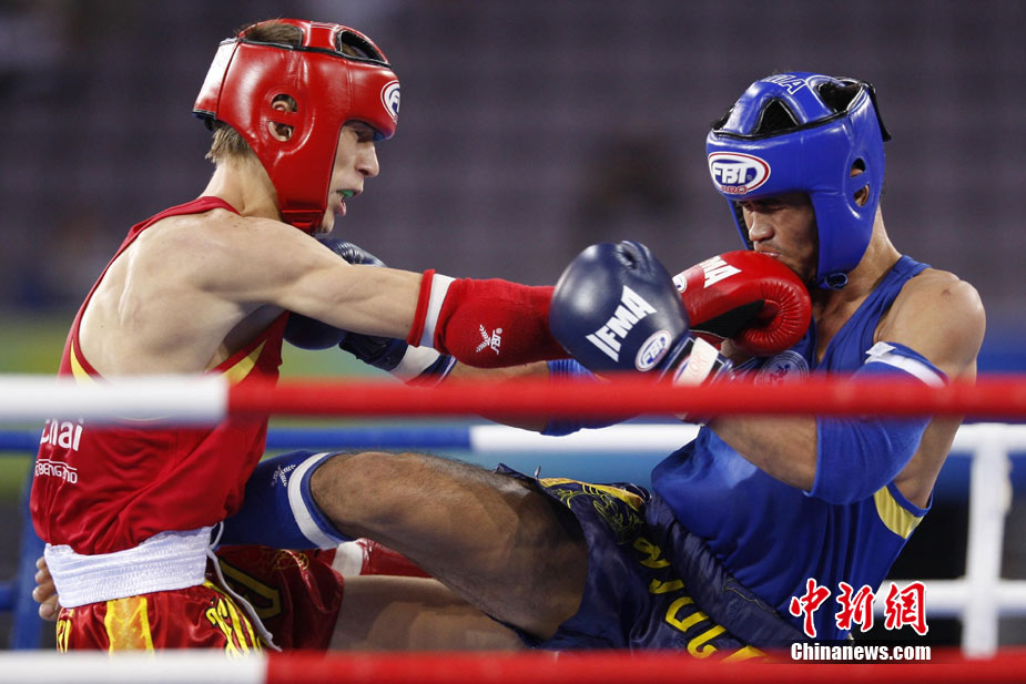 9月1日,2010年北京首届世界武搏运动会空手道项目在北京科技大学体育馆结束了全部争夺。图为在女子-68公斤级决赛中,来自美国的墨菲(Murphy)(图)被法国选手泛亚特(Fanjat)击中面部,最终不敌对手屈居第二。中新社记者 富田 摄