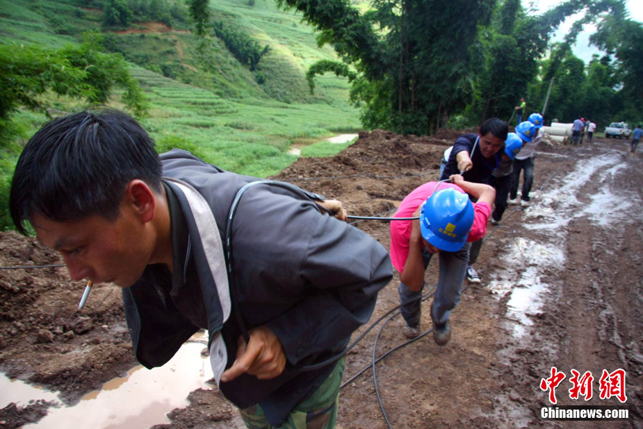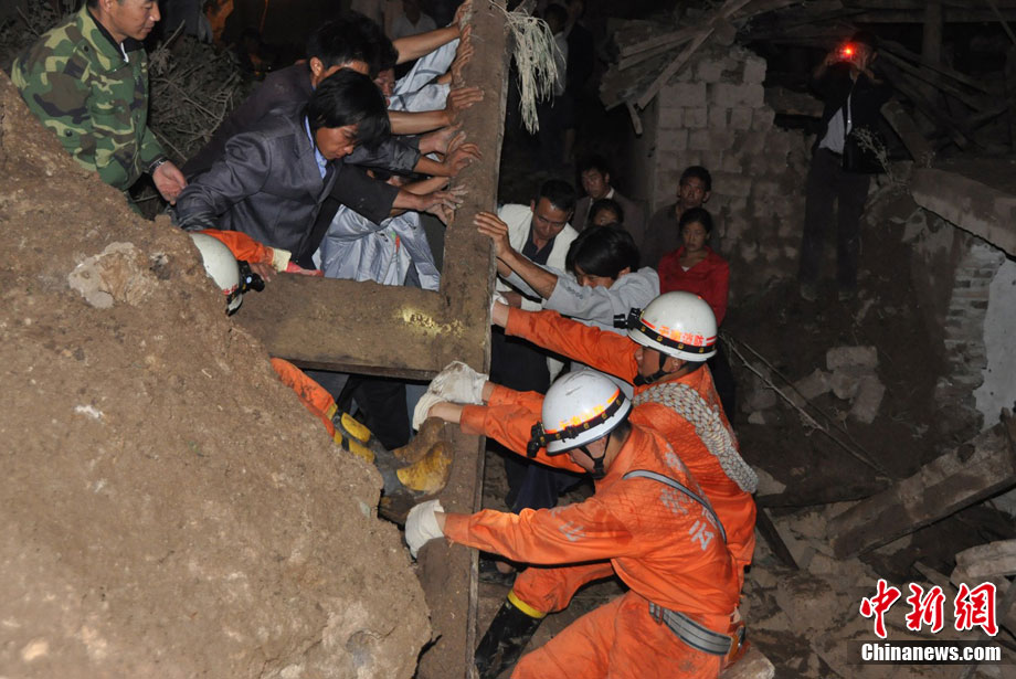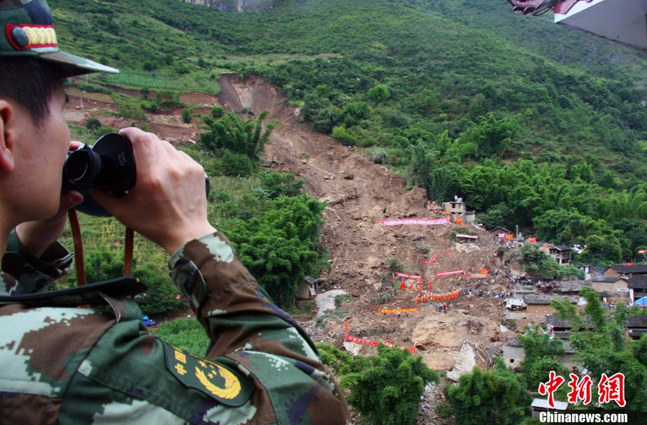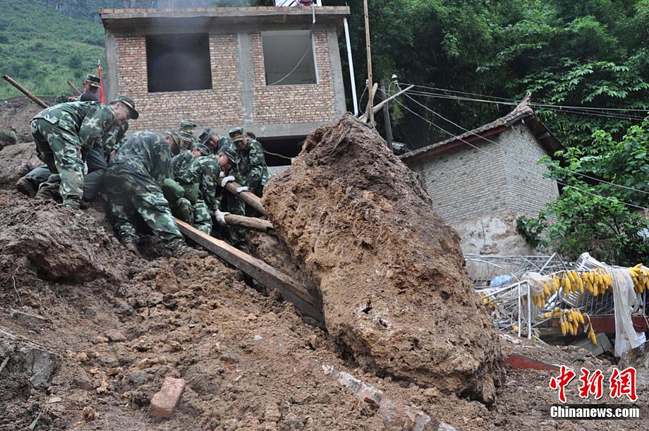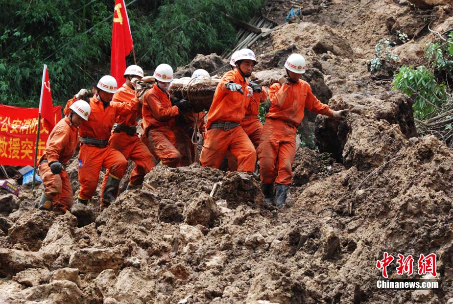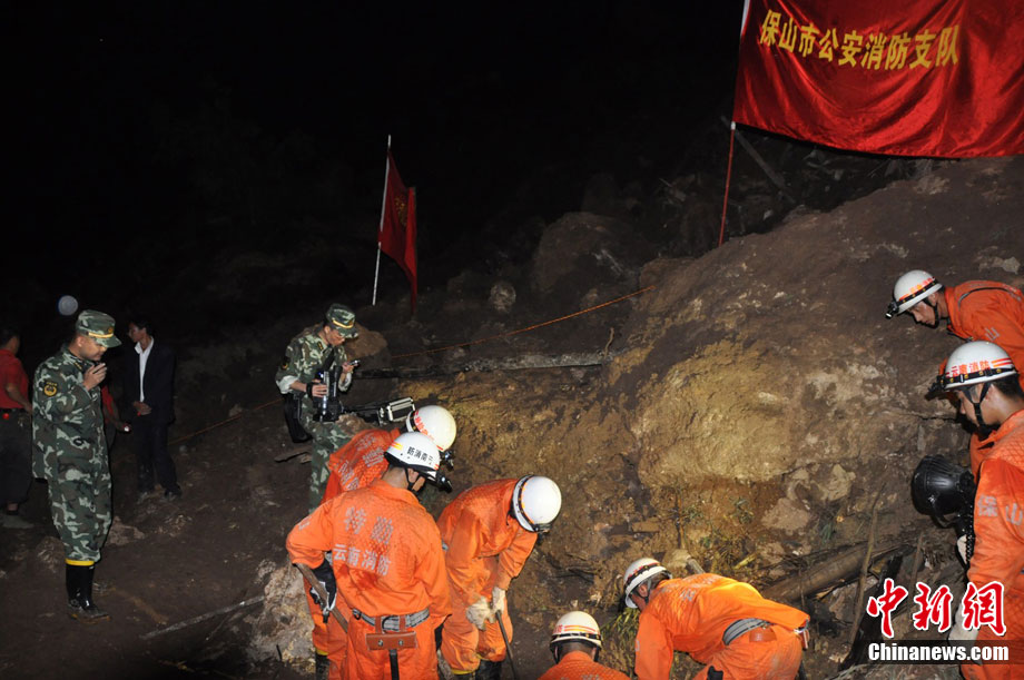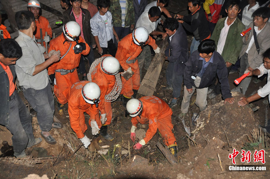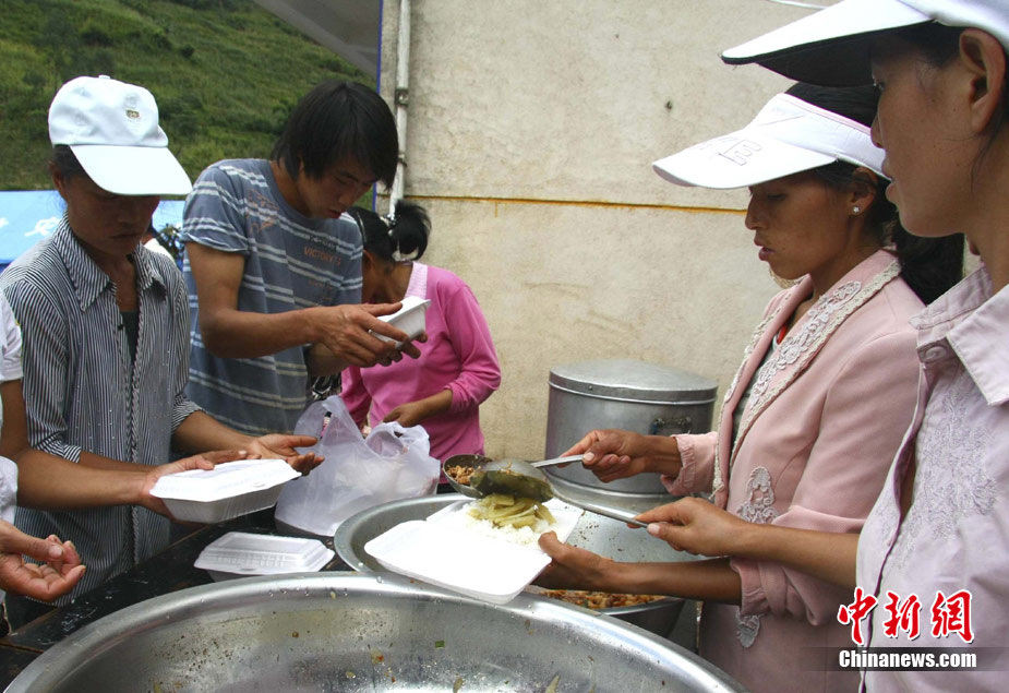 截止2010年9月3日上午8时,云南省保山隆阳区瓦马乡河东村大石房村民小组的特大地质灾害已致15人死亡,33人失踪。据参与救援的武警某中队中队长介绍,他们中队参加救援的150多人当中80%都是“90”后,最小的只有17岁,并且在两天的救援工作中就搜救出了2名遇难者。图为救援官兵午间休息。中新社发 任东 摄