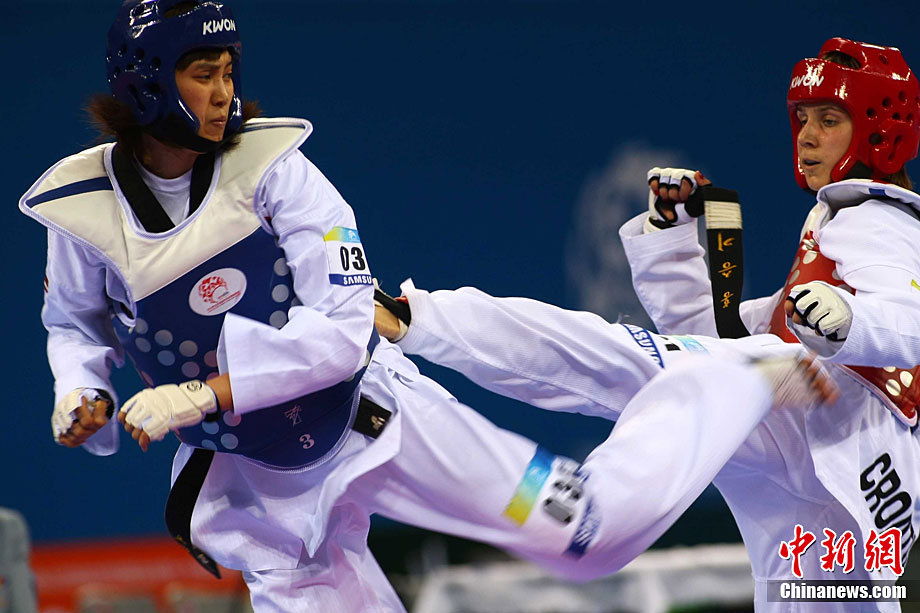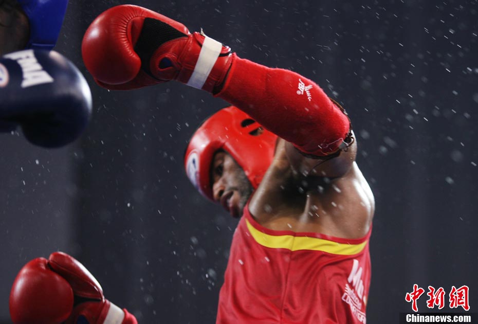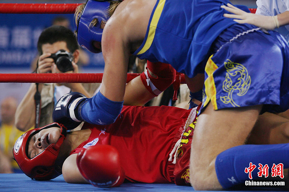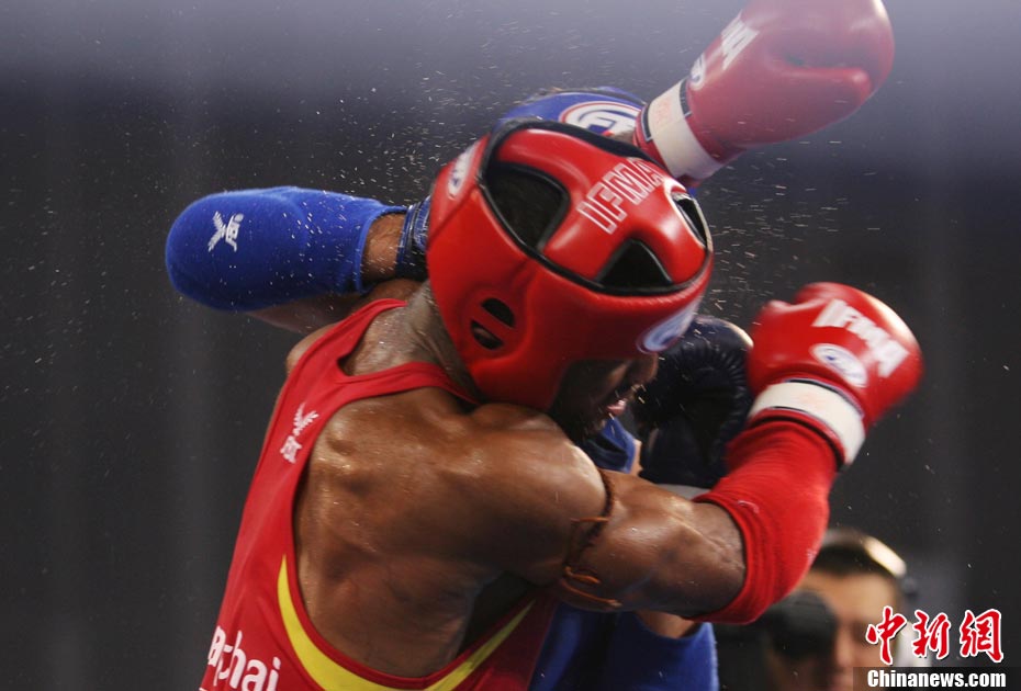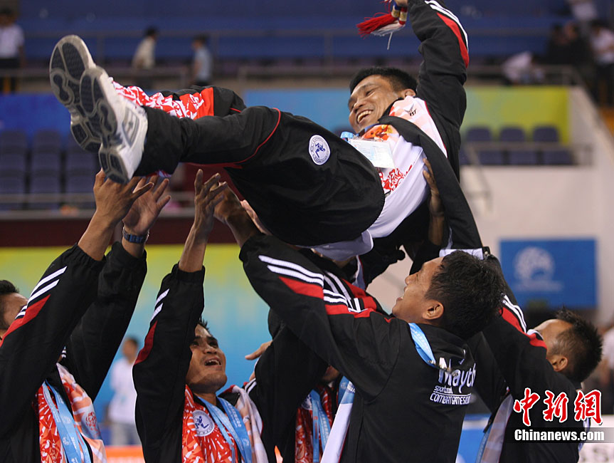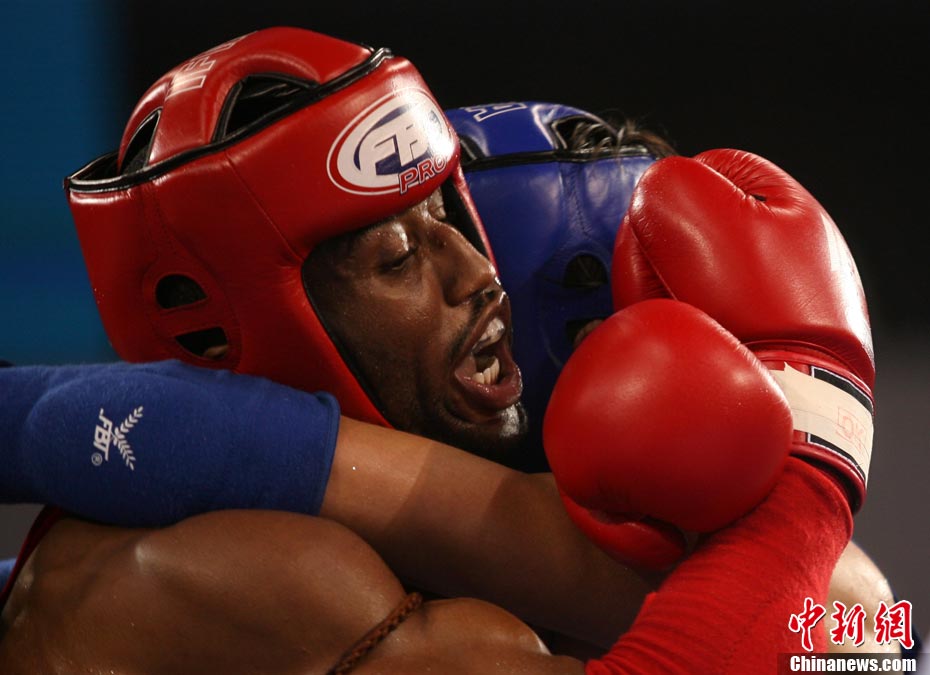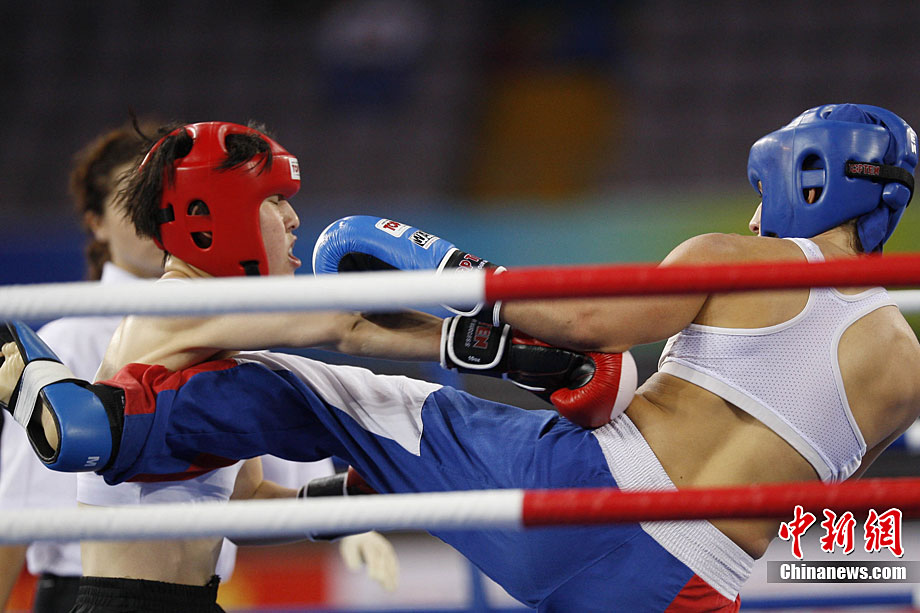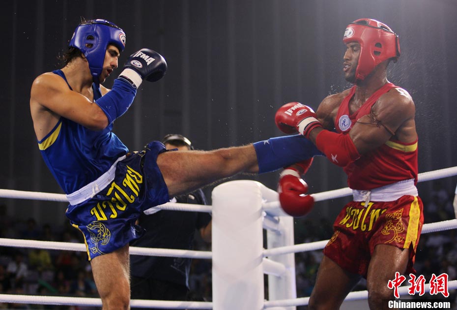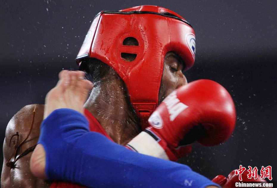 9月3日,2010年北京首届世界武搏运动会剑道比赛在北京科技大学体育馆开赛,当天举行男、女个人赛预赛和决赛及女子特殊邀请赛预赛和决赛。图为在男子个人邀请赛中,日本选手昭司寺本(Shoji TERAMOTO)(右)和巴西选手奥纳卡(Ernesto Eisaku ONAKA)在比赛中。中新社记者 盛佳鹏 摄