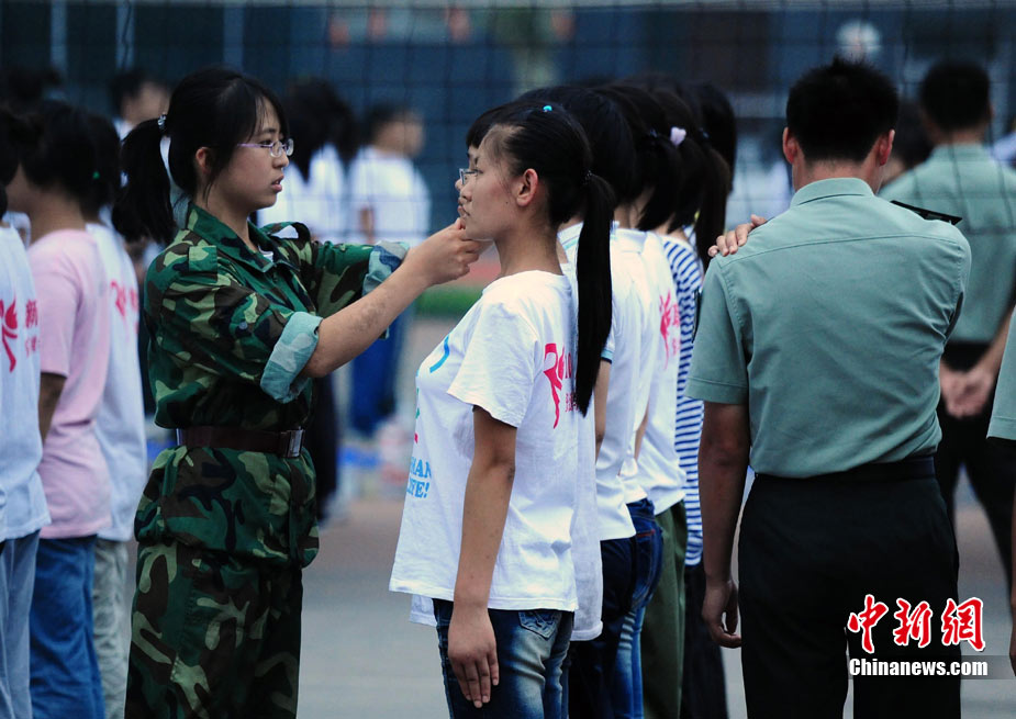9月3日下午,中国农业大学校园内,刚入校的大一新生正在进行军训。中新社记者 侯宇 摄