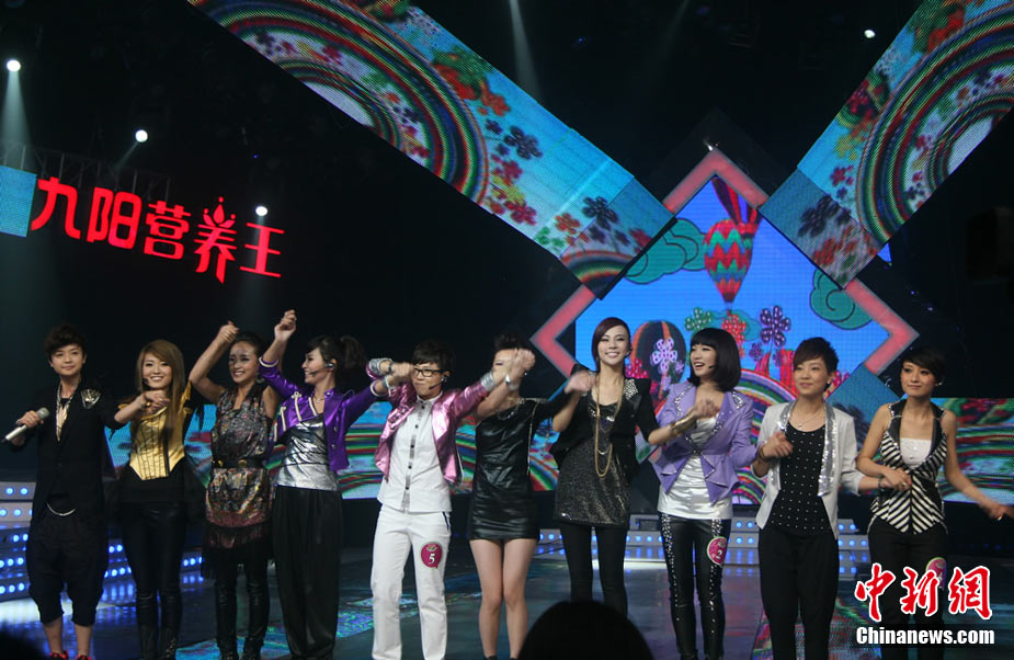 9月5日凌晨,拿下今年国内选秀节目首张“准生证”的“花儿朵朵”在长沙落下帷幕。经过长达五个多小时的马拉松式的比赛后,广西女孩莫龙丹(左)以绝对优势夺冠,蔡婷玉(中)和李慧分获亚、季军。中新社记者 邓霞 摄