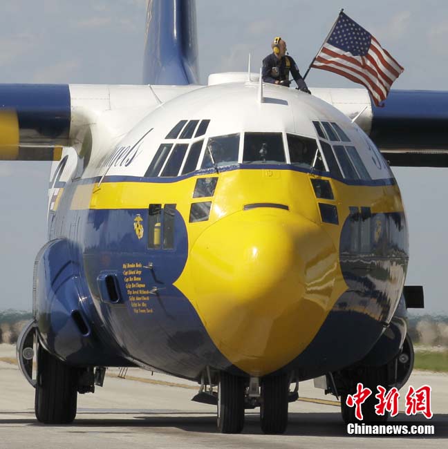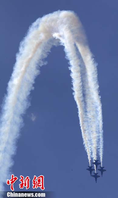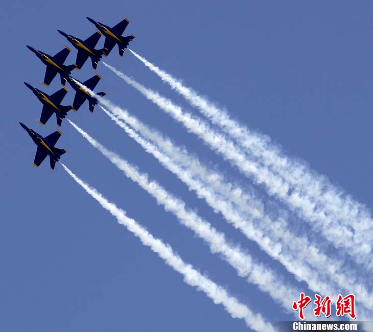 “蓝色天使”飞行表演队进行空中特技表演