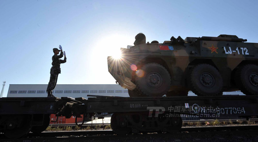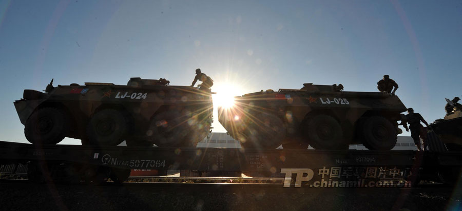随着军列一声长鸣,中方陆军战斗群第一梯队9月5日晚于新疆阿拉山口驶出国门,进入哈萨克斯坦境内,参加“和平使命-2010”联合军演。这是中国军队第二次跨境远程投送兵力参加上合联演。
