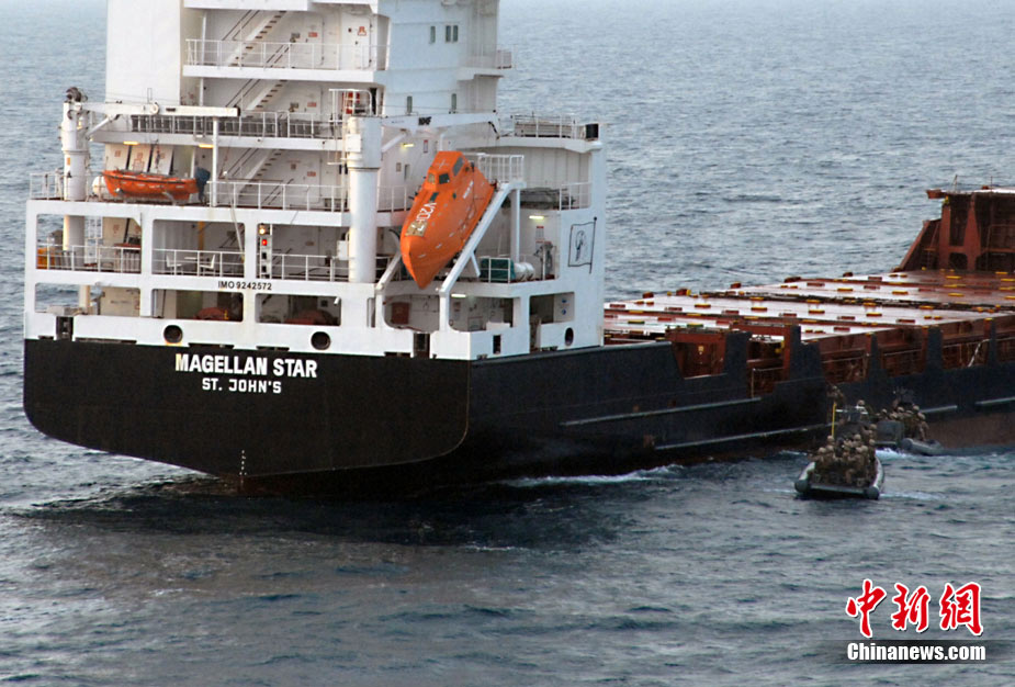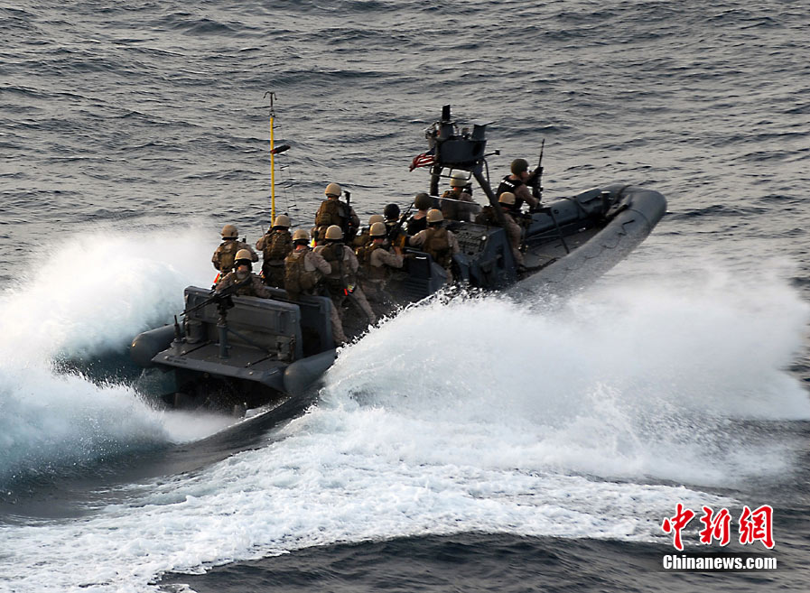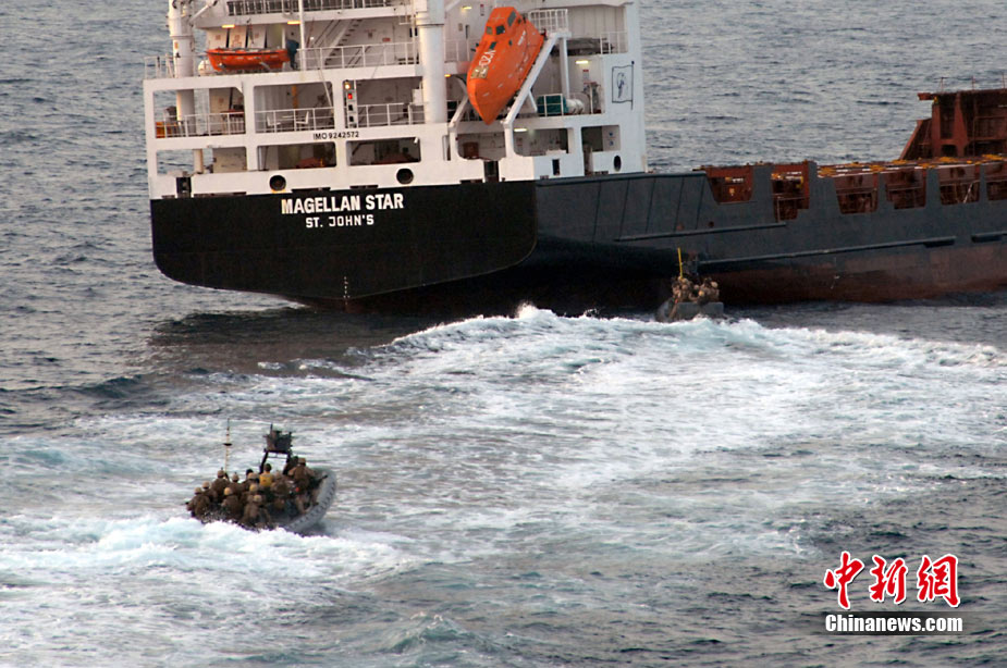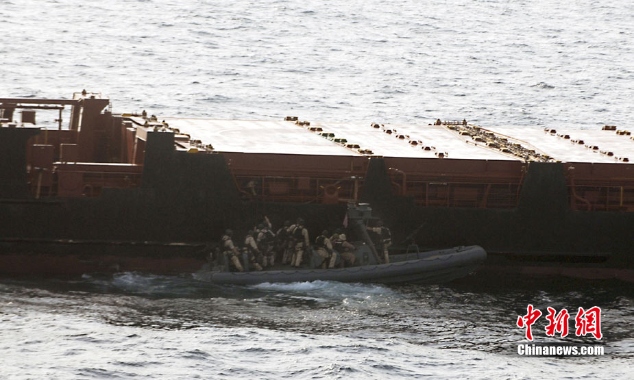 据称24名美陆战队官兵乘橡皮快艇驶向遭劫持的货轮,并悄悄通过便携式旋梯登上货轮。有意思的是,美军采用的登船战术和海盗们劫持货轮的手段如出一辙。