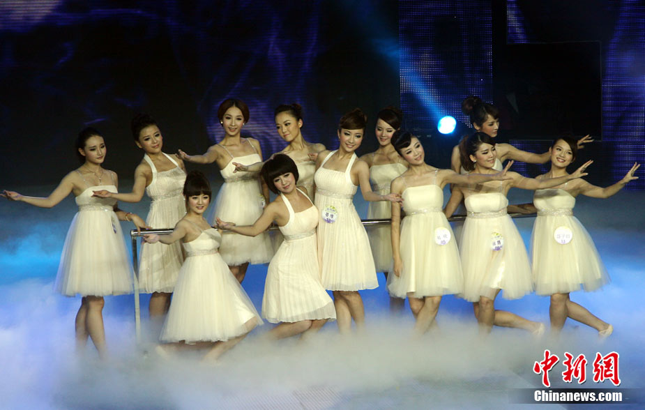 9月12日晚,湖南娱乐频道2010年度星姐选举决选月第四场形体秀绚丽上演。星姐12强佳丽身着泳装,手拿玩具或者运动装备,在动感的旋律中逐个亮相,展示青春完美体态。图为8号佳丽谢绿路(右一)从12位准星姐中脱颖而出,荣获了“完美体态奖”。中新社记者 邓霞 摄