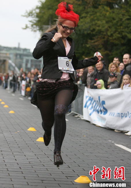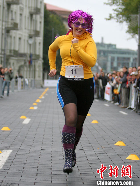 9月11日,在立陶宛首都举行了一场别开生面的高跟鞋赛跑大赛。