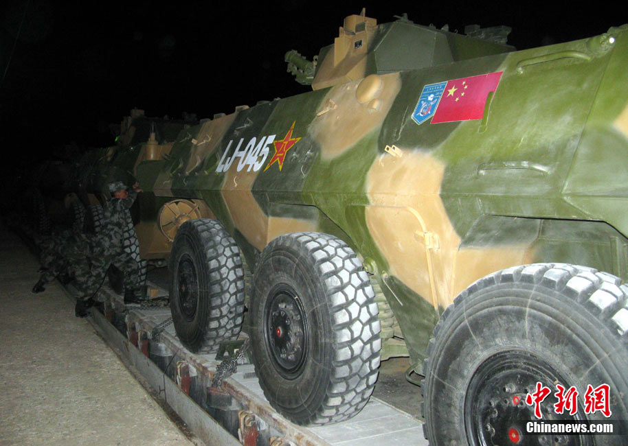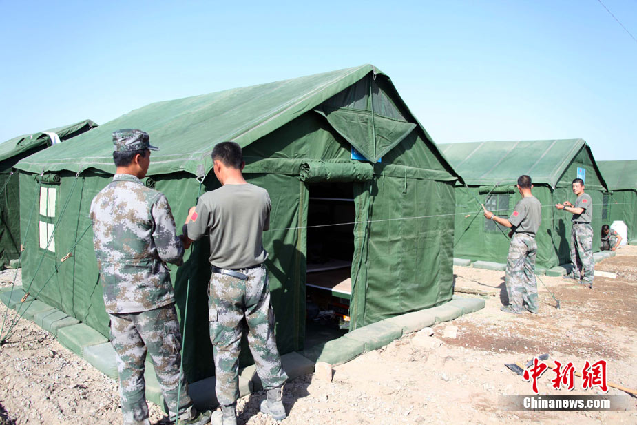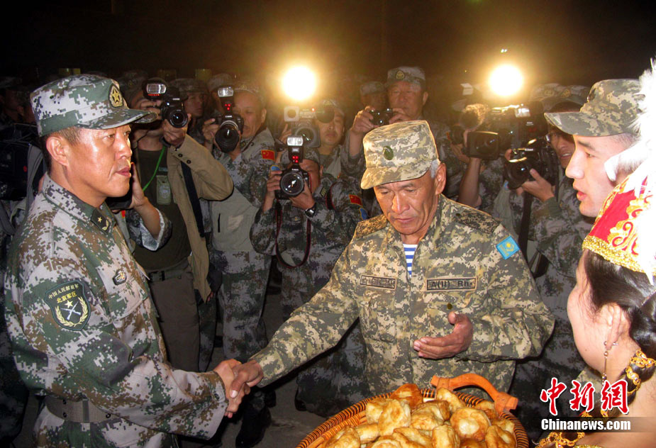 9月13日,“和平使命-2010”上海合作组织联合反恐军事演习在哈萨克斯坦马特布拉克训练场举行盛大的开训仪式,标志着这次联合军演由战役磋商阶段正式转入战役准备阶段。随后,哈、中、吉、俄、塔五方参演部队依次举行分列式,图为中方参演部队迈着矫健的步伐从开训仪式主席台前列队走过,接受检阅。中新社记者 孙自法 摄