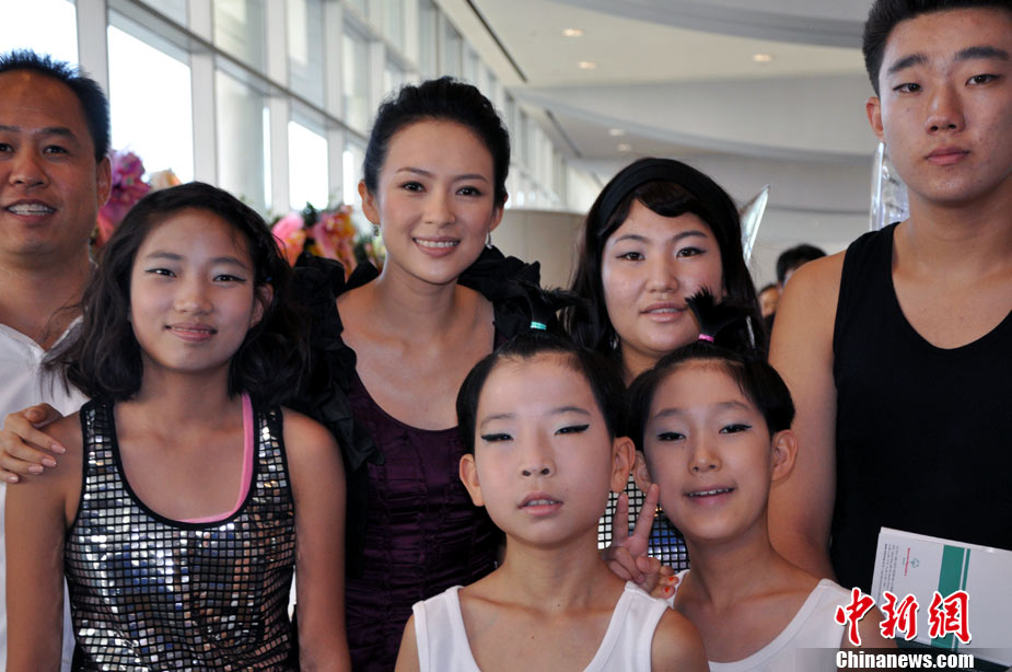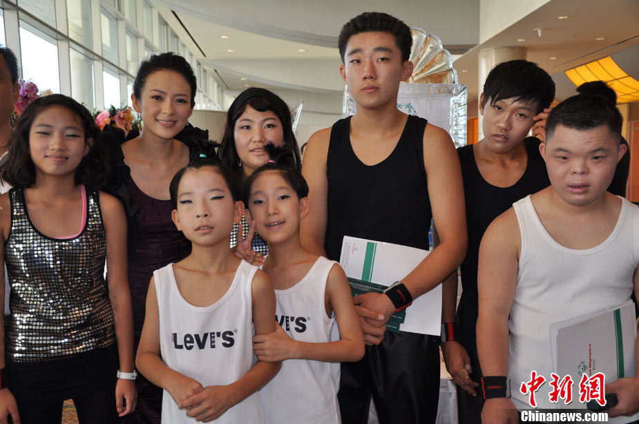 当地时间9月15日上午,国际特奥会在首尔举办“2013年特殊奥林匹克冬季运动会”新闻发布会和签字仪式,并宣布韩国平昌将成为本届冬季特奥会的主办地。特奥全球形象大使、国际影星章子怡出席发布会,身体力行关爱智障人士,为他们的表演和精神鼓劲加油。美国加州州长、前动作巨星阿诺德•施瓦辛格出席该活动,并与章子怡等共同见证特奥的启动。图为章子怡为智障儿童加油打气。
