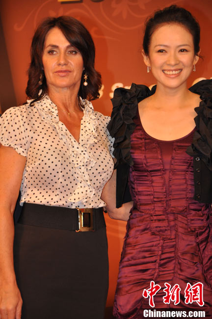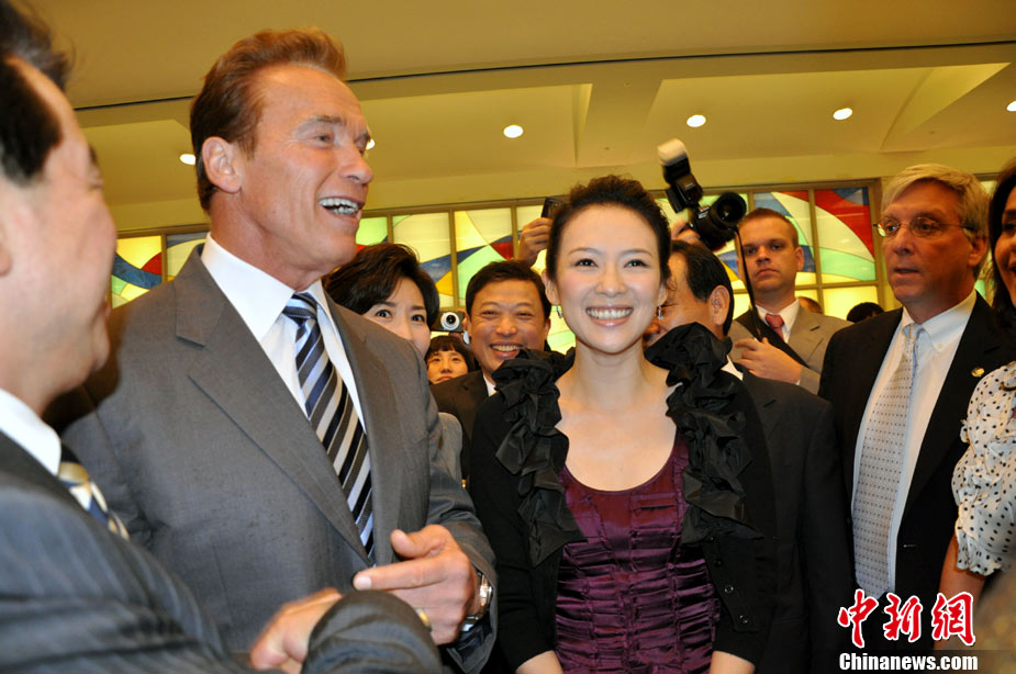 章子怡首尔与施瓦辛格同为智障儿童加油
