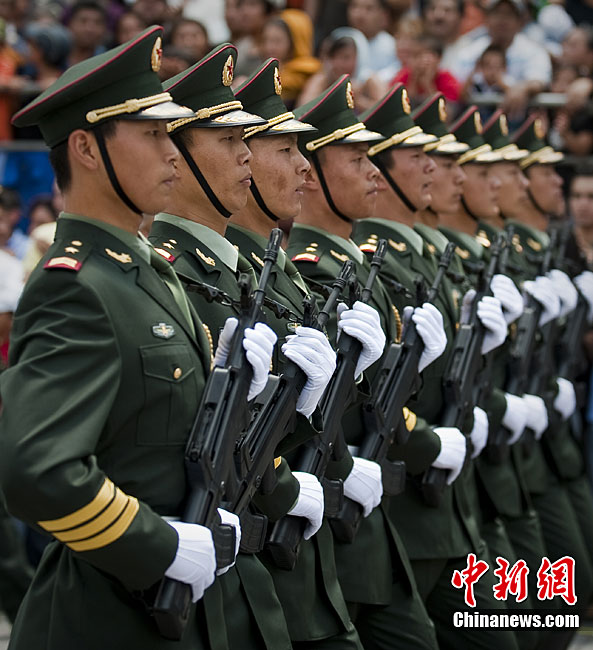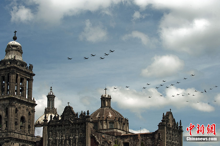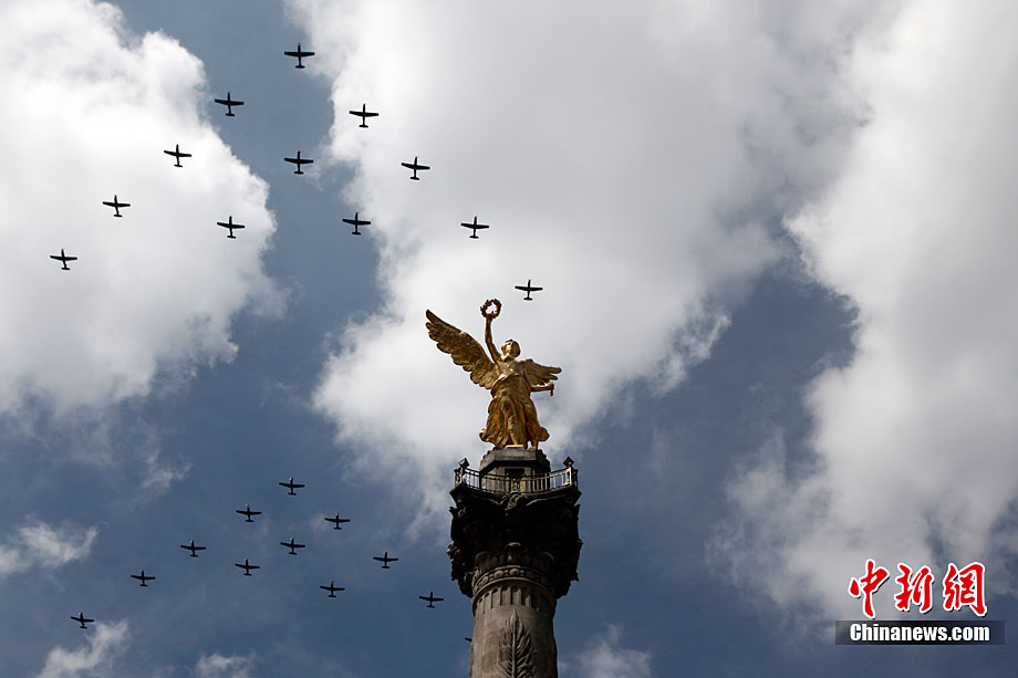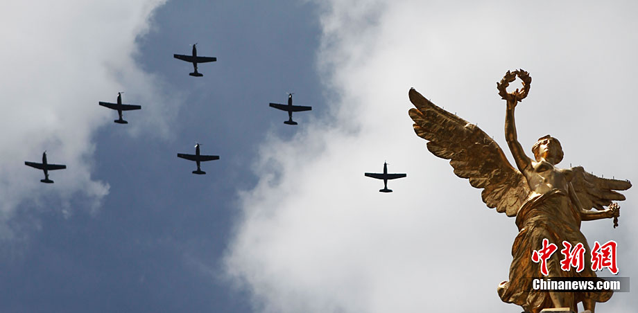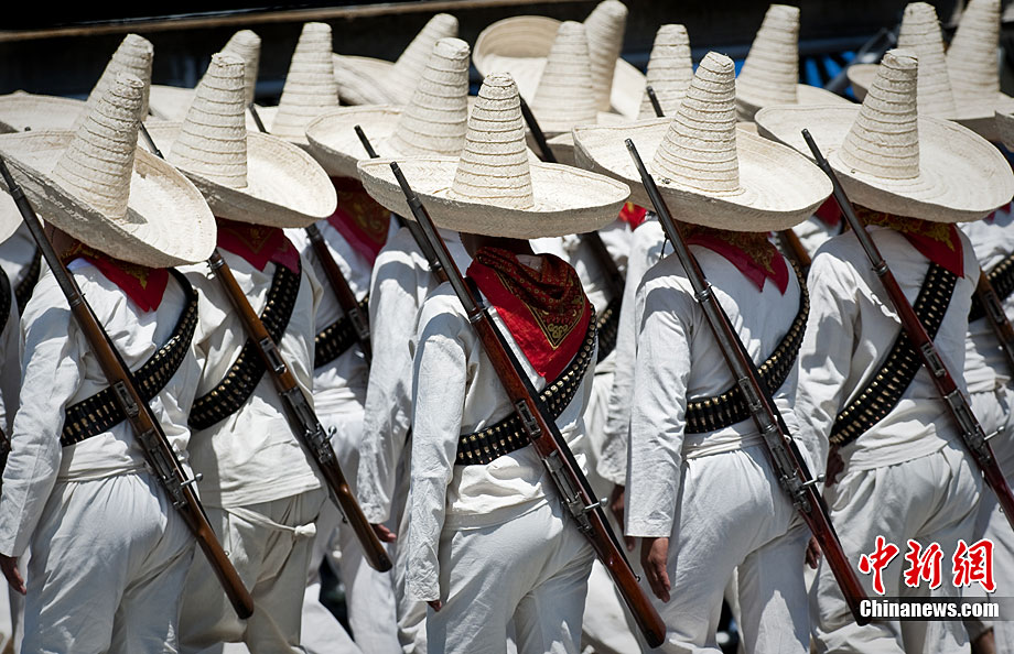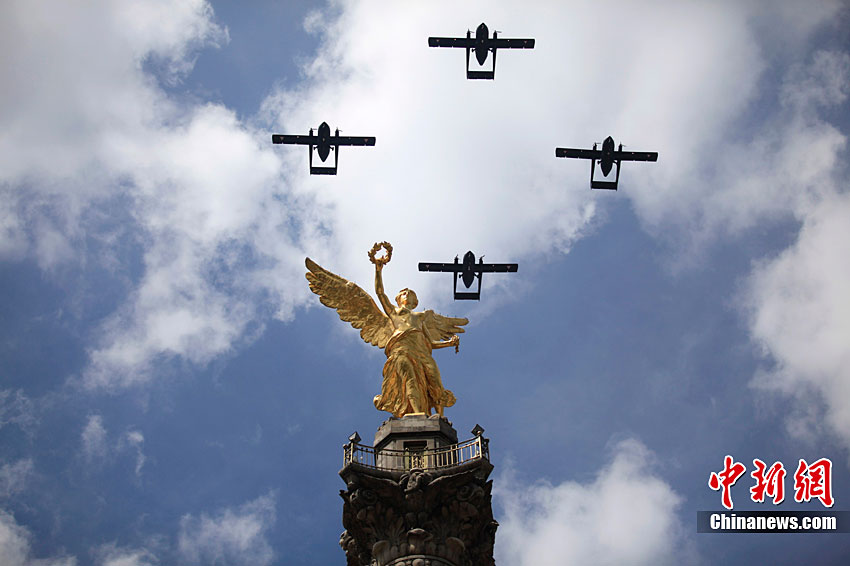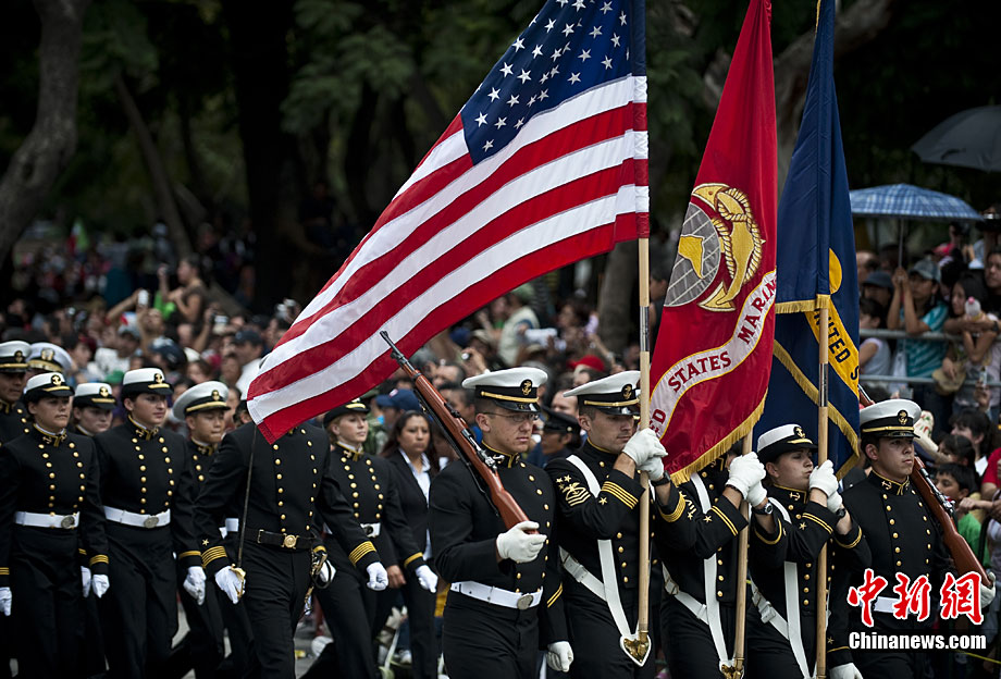 9月16日,在墨西哥首都墨西哥城,中国人民解放军仪仗方队参加墨西哥独立200周年庆典阅兵。参加此次阅兵的中国仪仗队由36人组成,其中34人编成方阵,最前方是1名旗手、5名护旗手,后随1名陆军指挥官,其身后列3队,陆海空各1列、每列9人。这是解放军仪仗部队首次走出国门远赴海外参加活动。