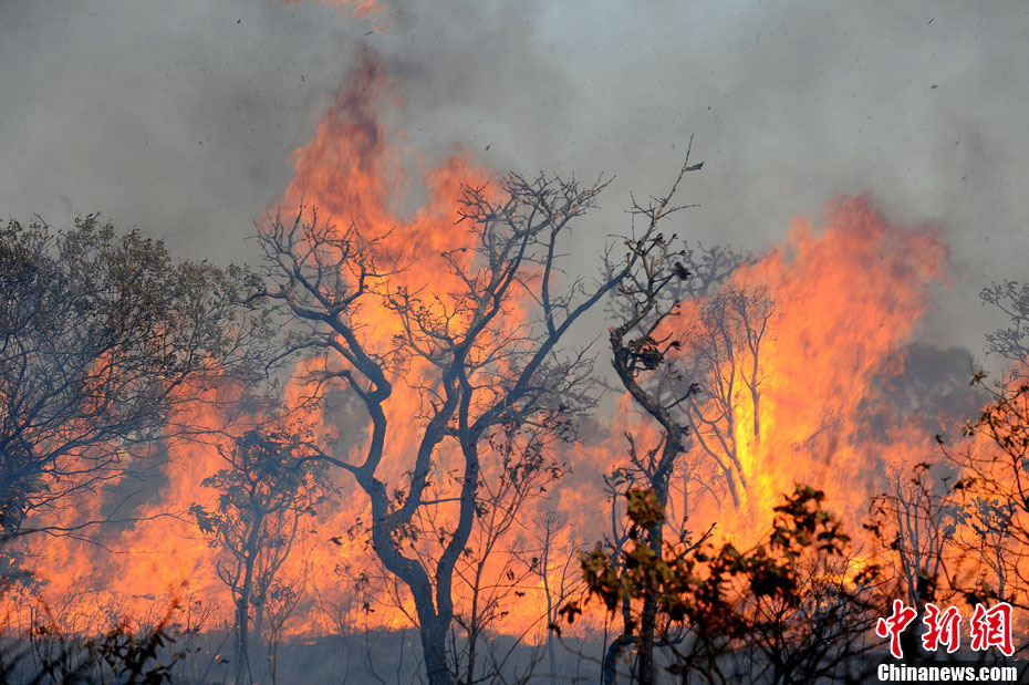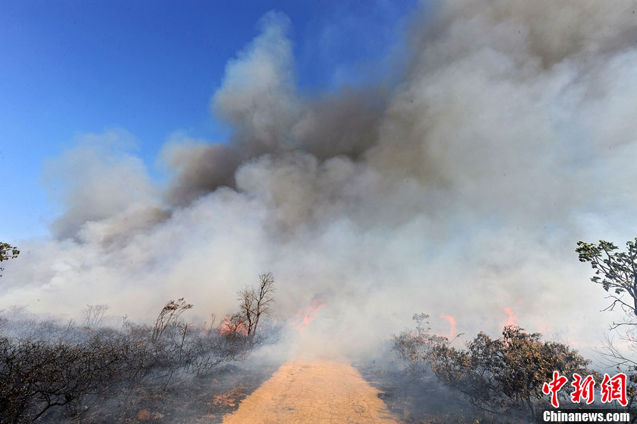 巴西首都巴西利亚附近的国家公园9月19日发生山林大火,虽然140余名消防员日夜不停地灭火,但据国家公园管理人员透露,目前火势已经失控。